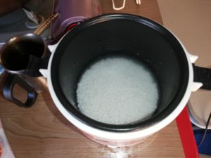 コメと水を注ぎ、いつでも炊けるように準備しといたのですよ。