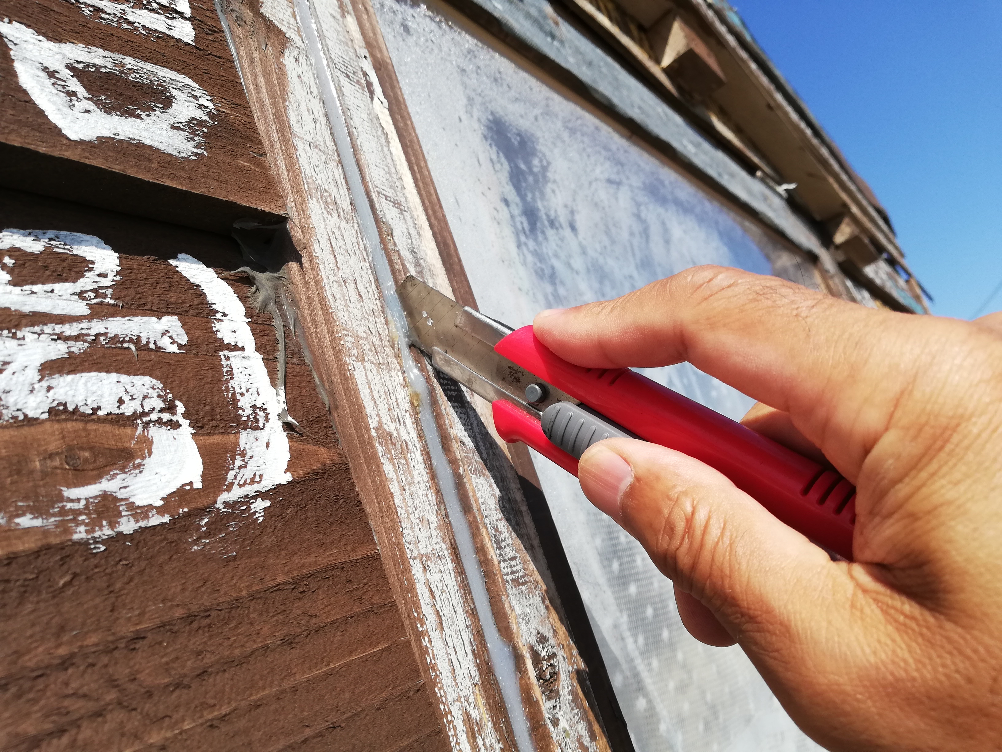 隙間を塞いでいたシリコンにカッターを入れて