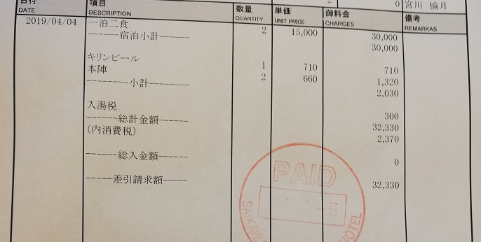 支出:32,330円(宿泊費)+10,960円(ゴルフ)+1,937円(食費)+1,020円(キャンプ)=46,247円