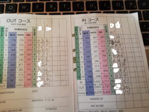 前回に続いてスコアカードに数字が縦に3列あったので、Nさんか◯テレ系の社長か誰かが一緒に回ってるのかな?と思ってました。まあ、Nさんにしては打数が少ないですけど…