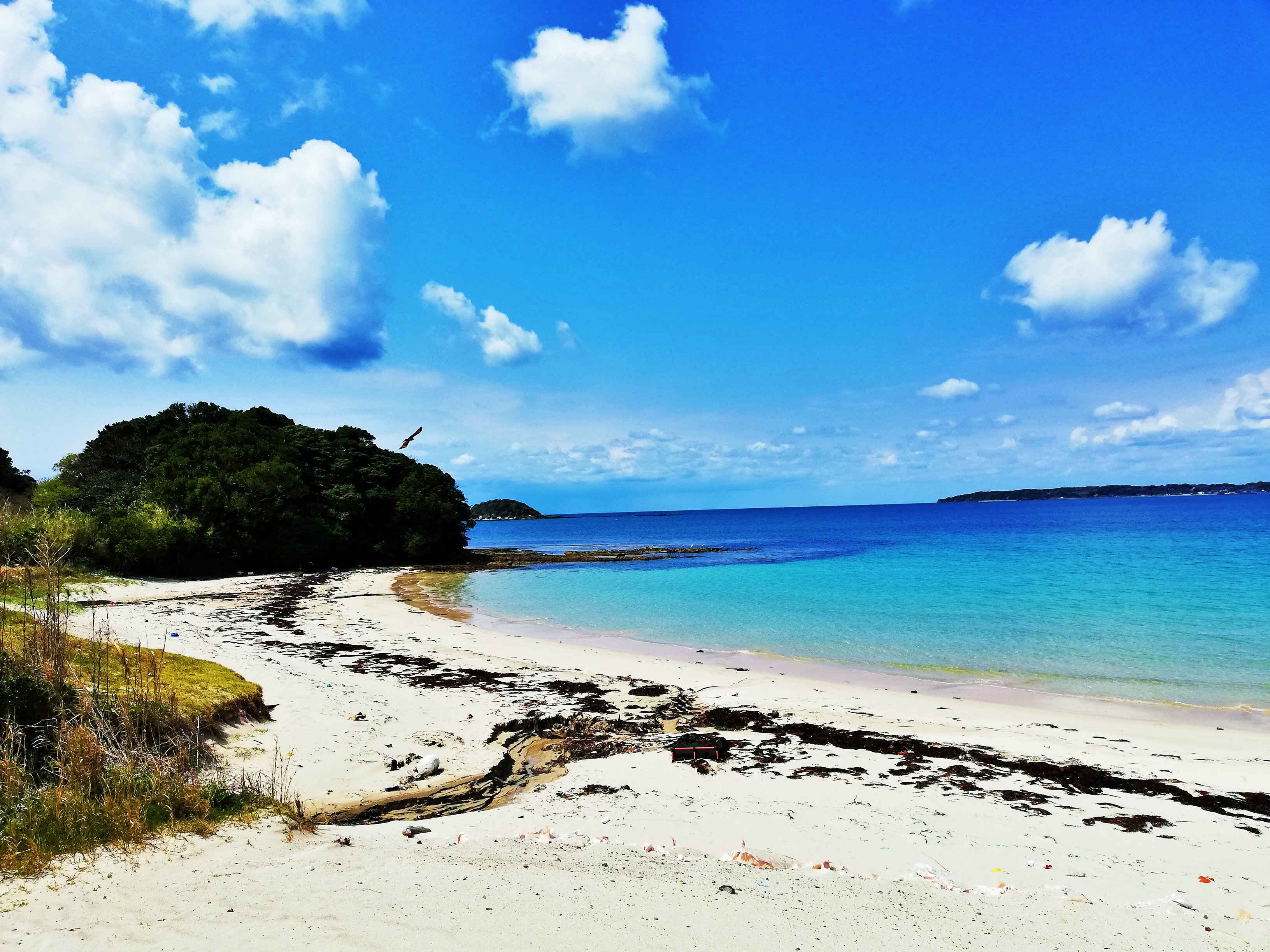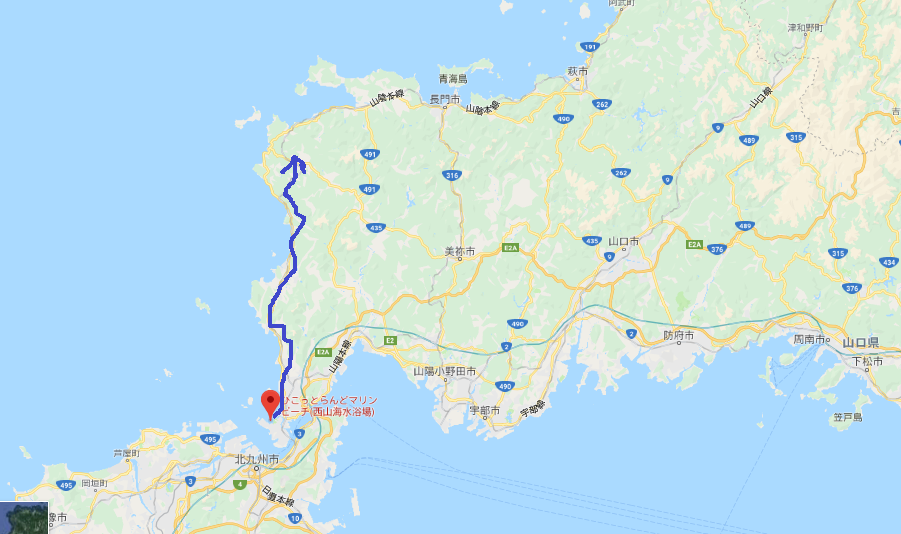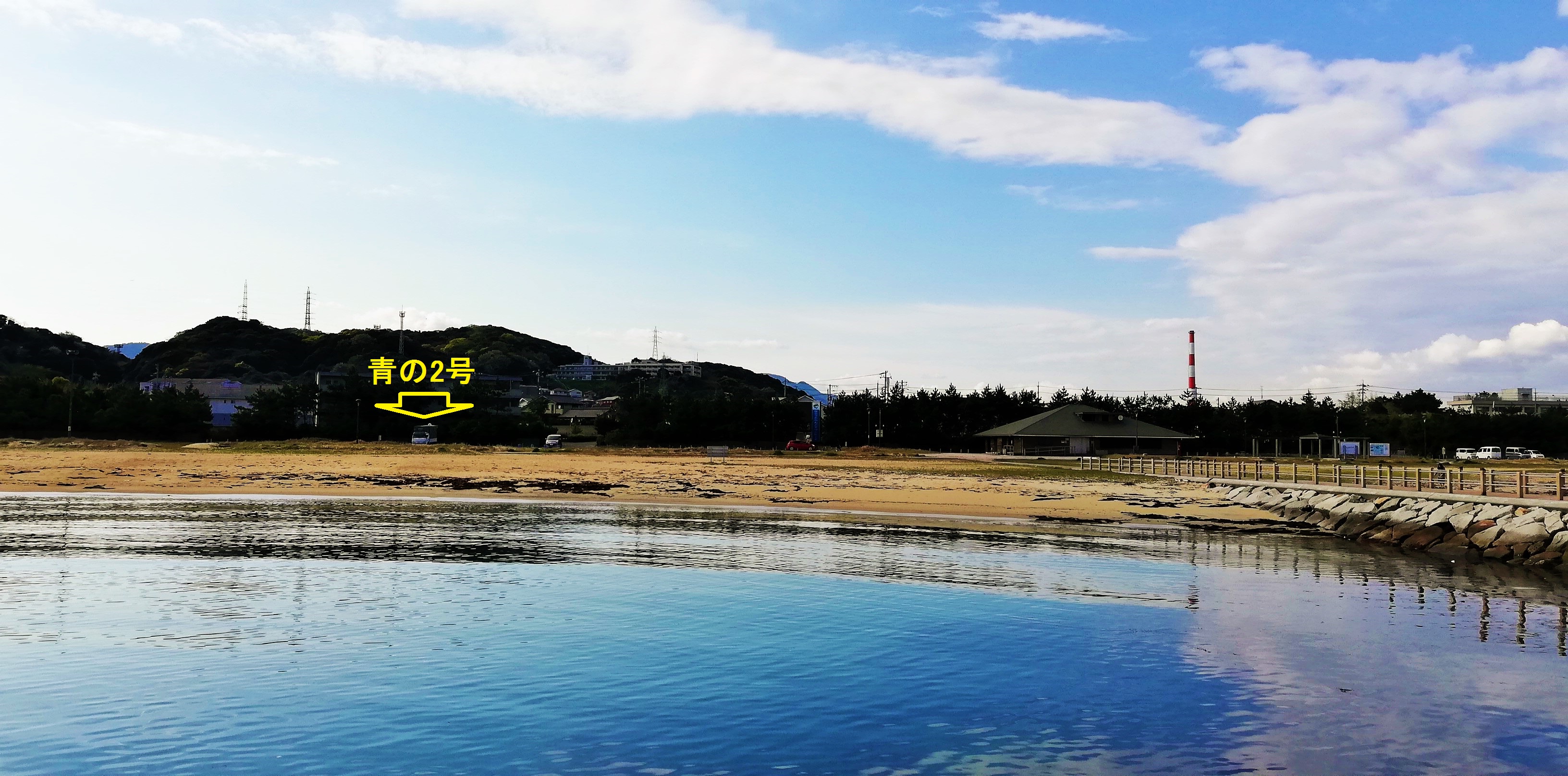 下関市の西山海水浴場、通称ひこっとらんどマリンビーチまで来ています。