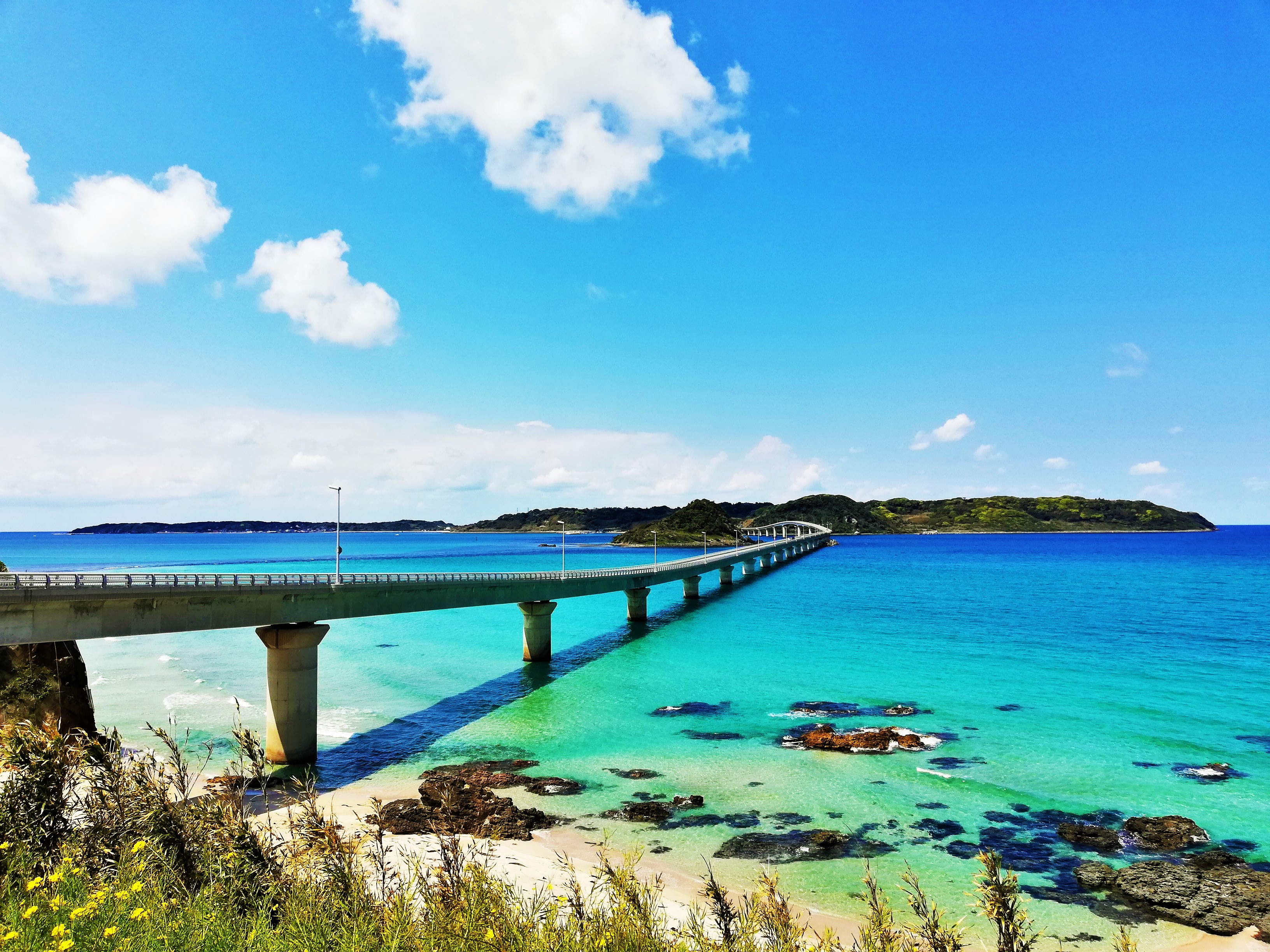数々のドラマやCMの舞台となっていて、年間90万人もの観光客が訪れるという角島大橋です。
