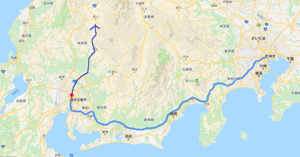 予定では、東京から東名高速で名古屋まで行き、名古屋から北上して飛騨高山を目指すはずだったのですが