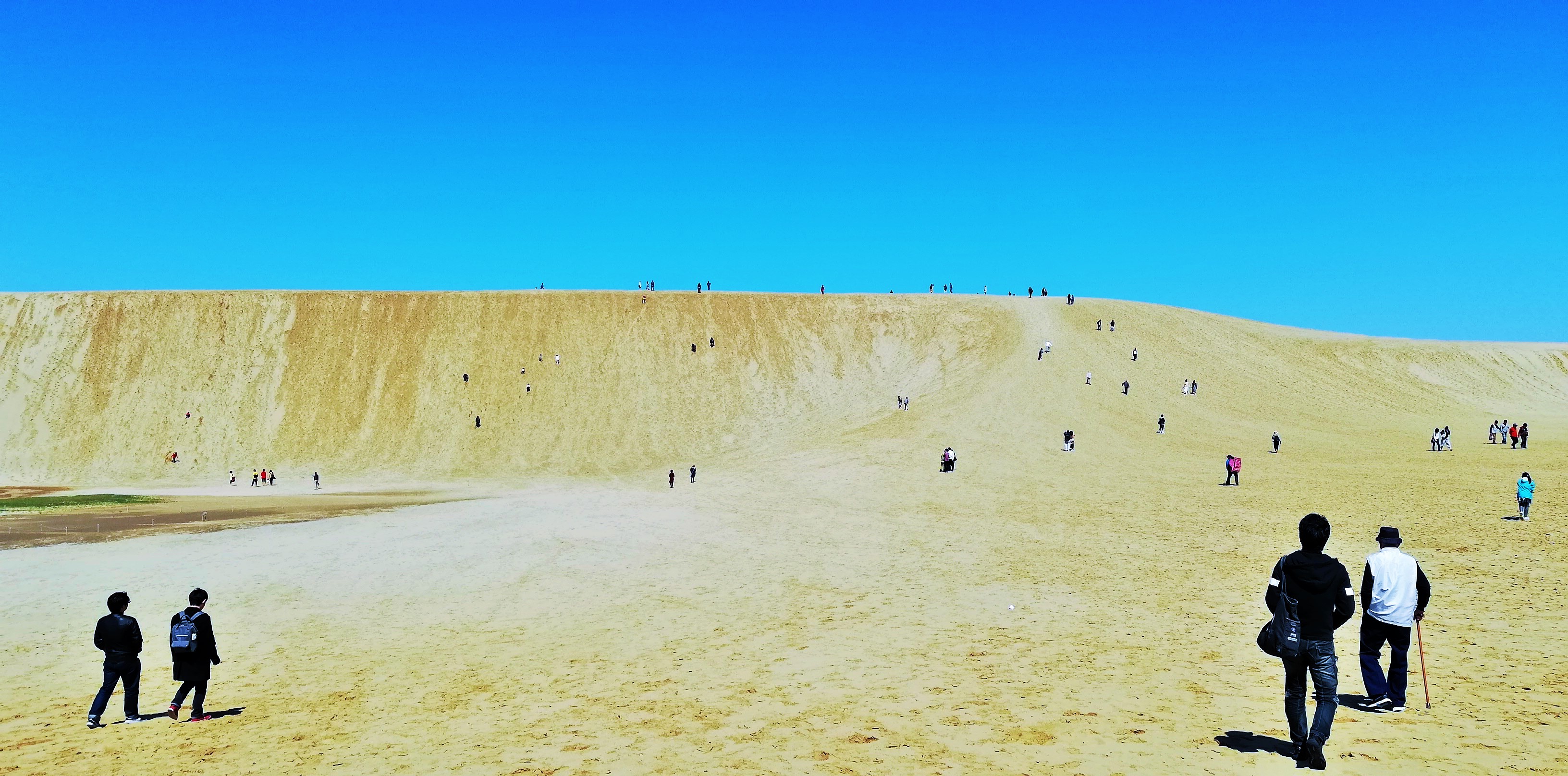 45年前も、去年も天気が悪かったので、晴天の元で初めて見る鳥取砂丘です。