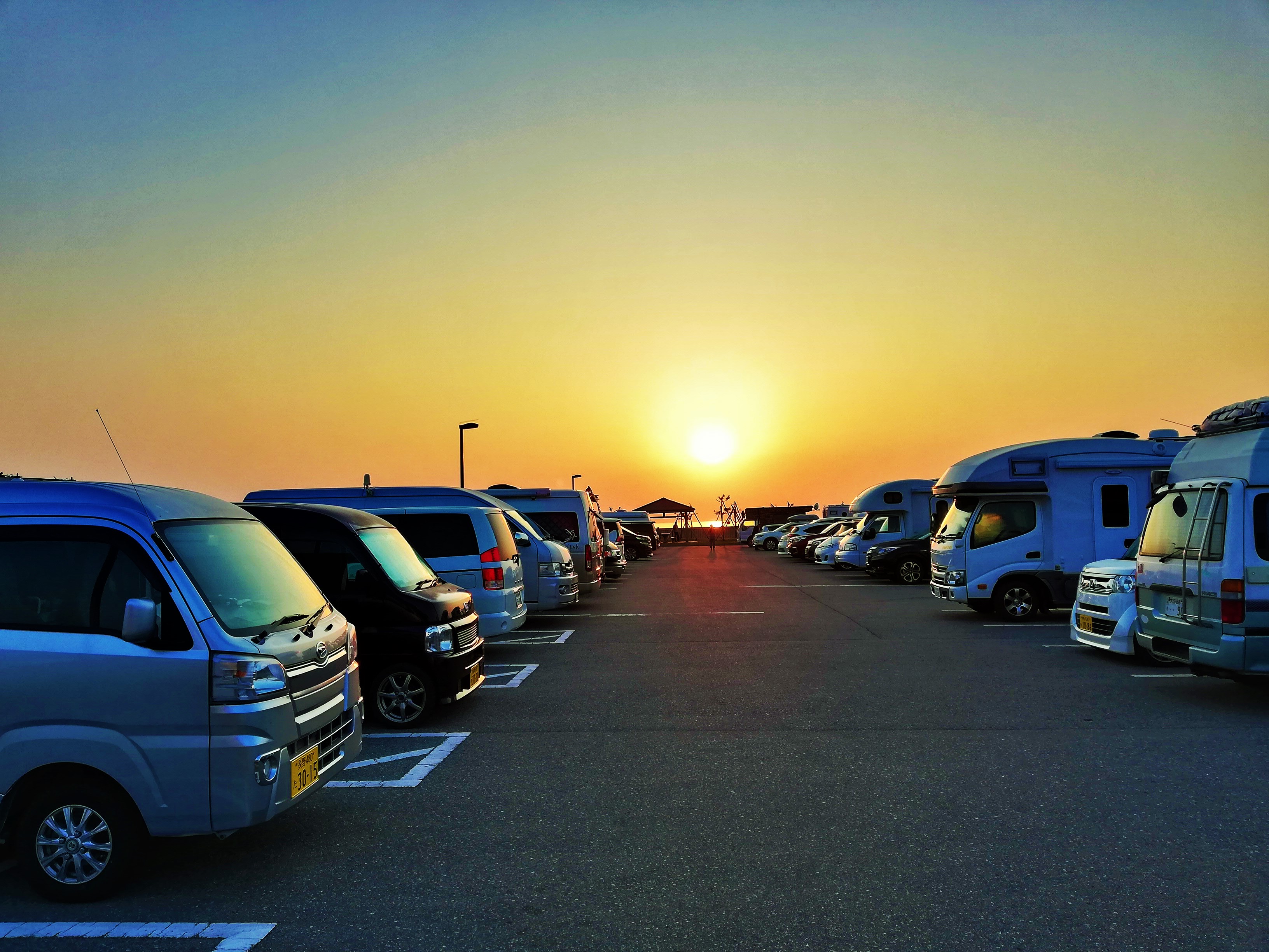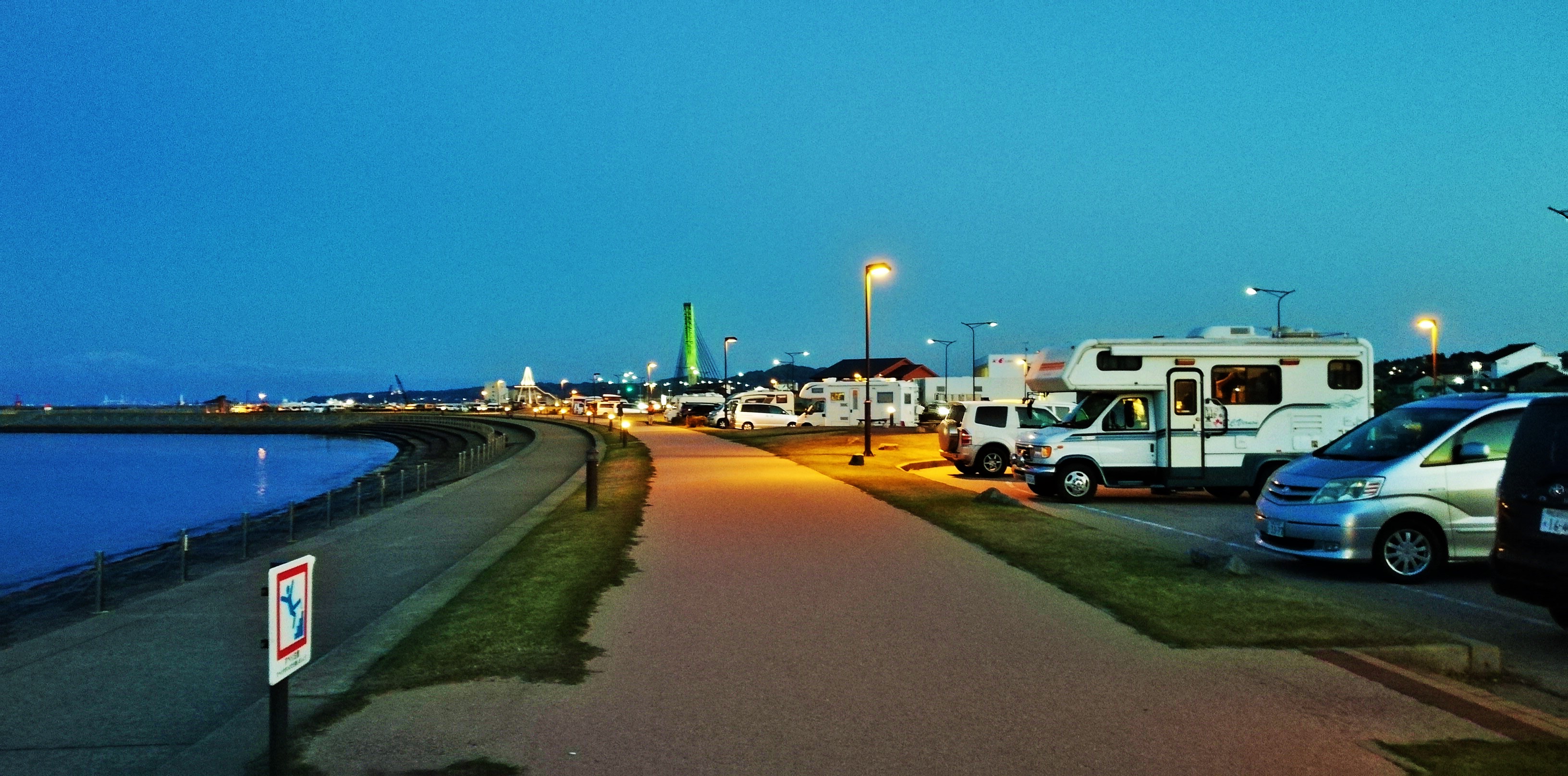 1. 海越しの立山連邦、ステキですね!一ヶ所に一年間づつ暮らしていいと言われたら、まず外したくない景色ですね。駐車場の車列から昇る朝日もなかなか無いショットで、車中泊ならではです。