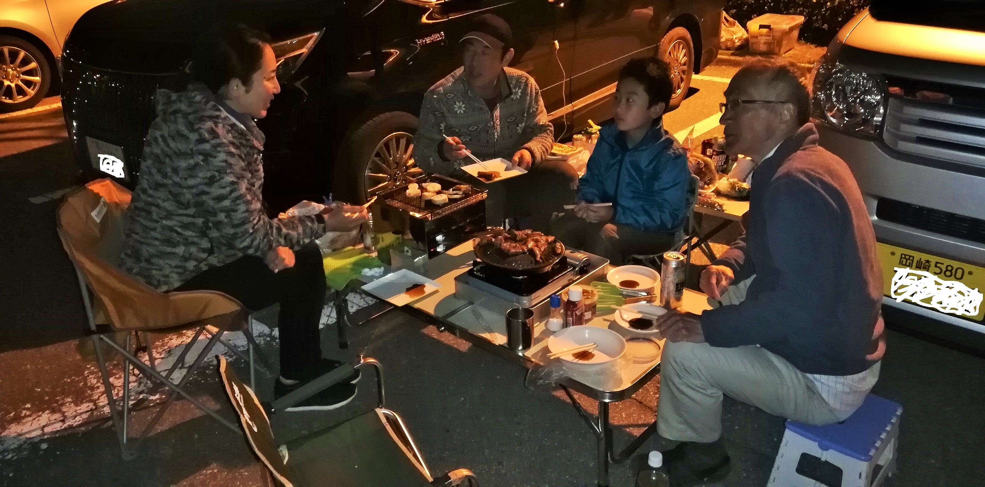 兵庫の宝塚からやってきた島岡さんご一家と小木さんで、焼肉パーティーです。