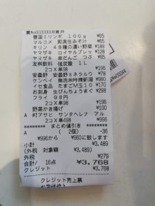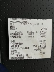 支出:3,768円(食費)+3,170円(軽油)=6,938円