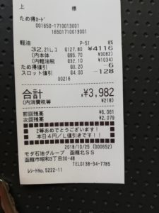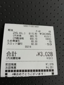 支出:13,160円(フェリー)+3,028円(軽油)+2,896円(食費)+500円(風呂)=19,584円