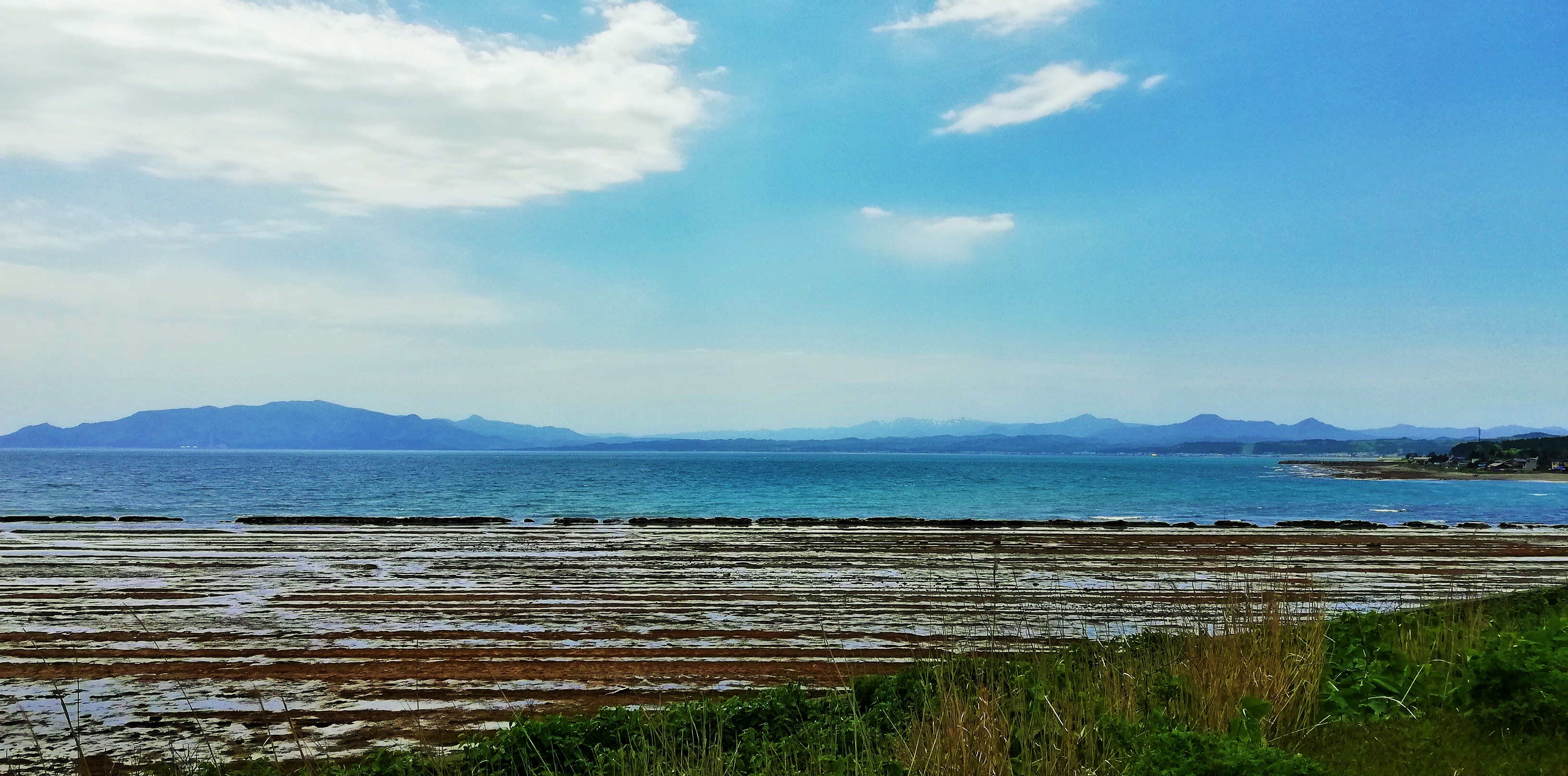 岸壁からは今日走ってきた下北半島の西海岸が見えます。