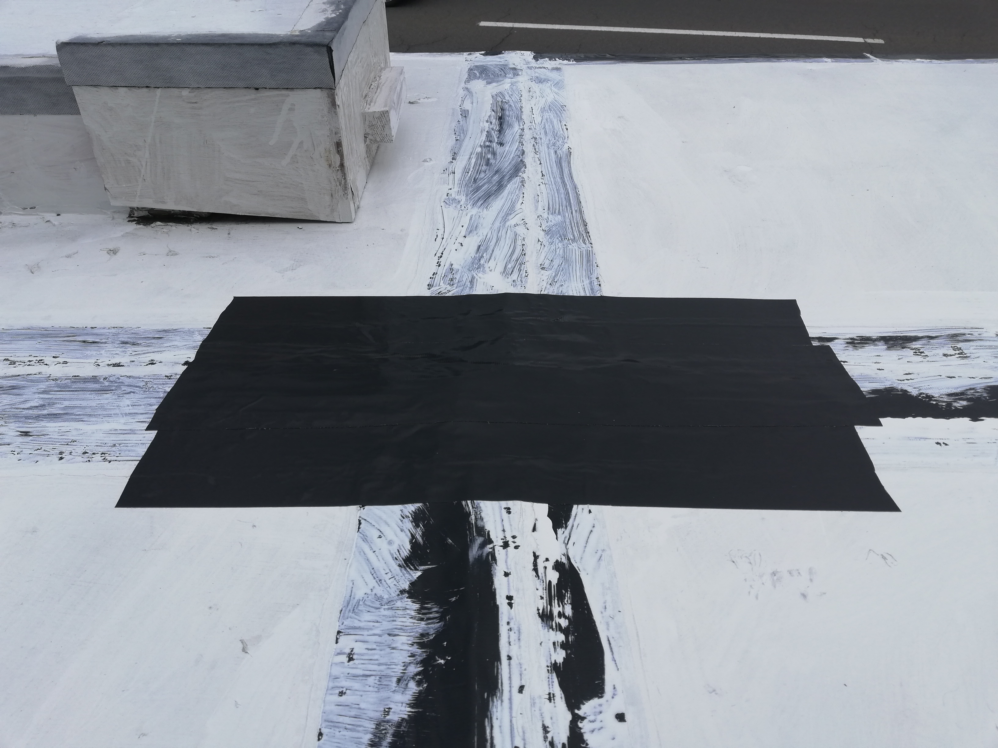 昨日防水テープを貼り、コーキングした上にペンキを塗っていきます。
