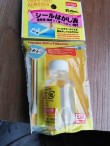これをティッシュに付けてこびりついた接着剤をふき取ります