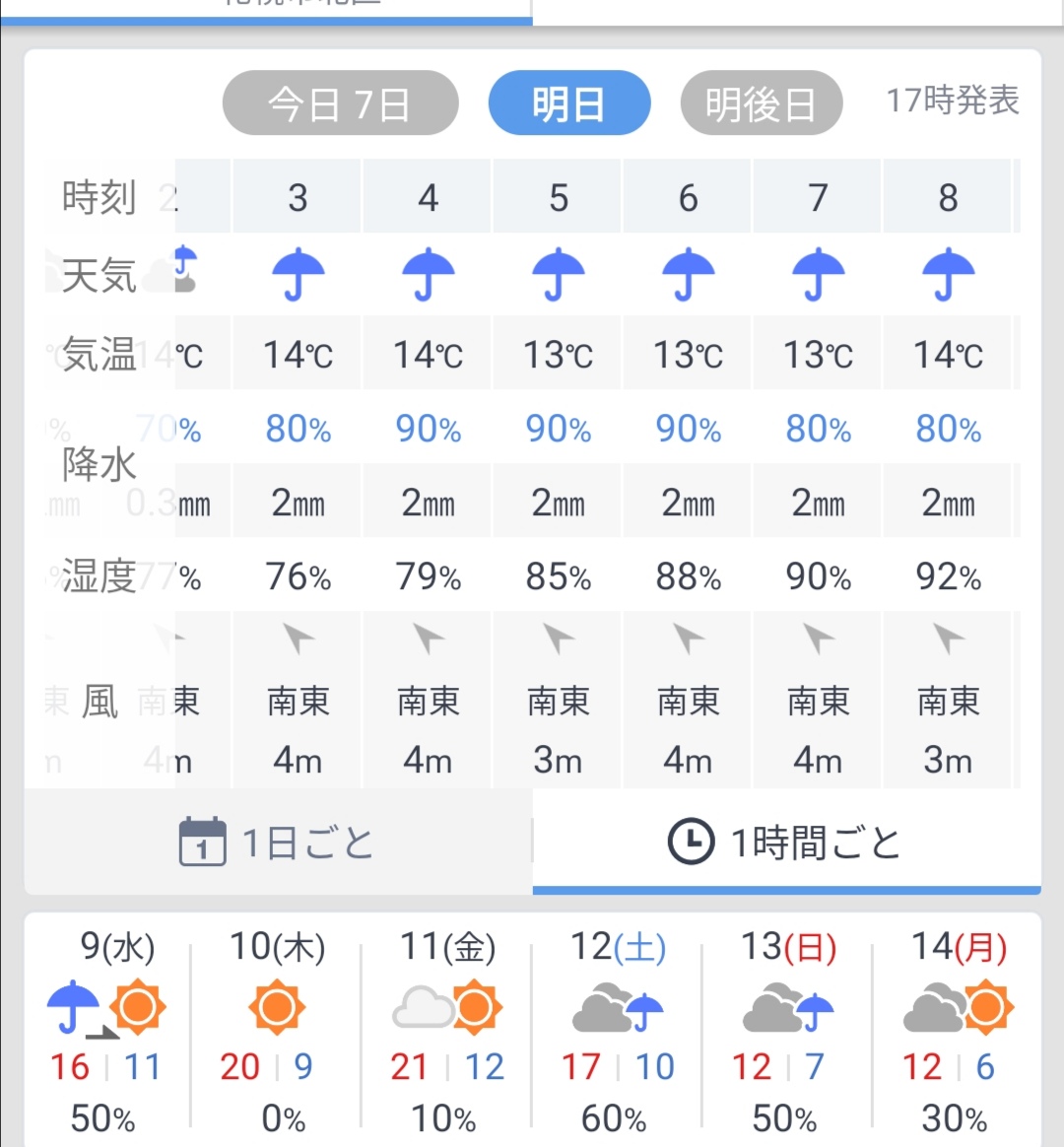 既に夕方から雨が降り出しましたが、今晩から明日の朝にかけて降るようです。
