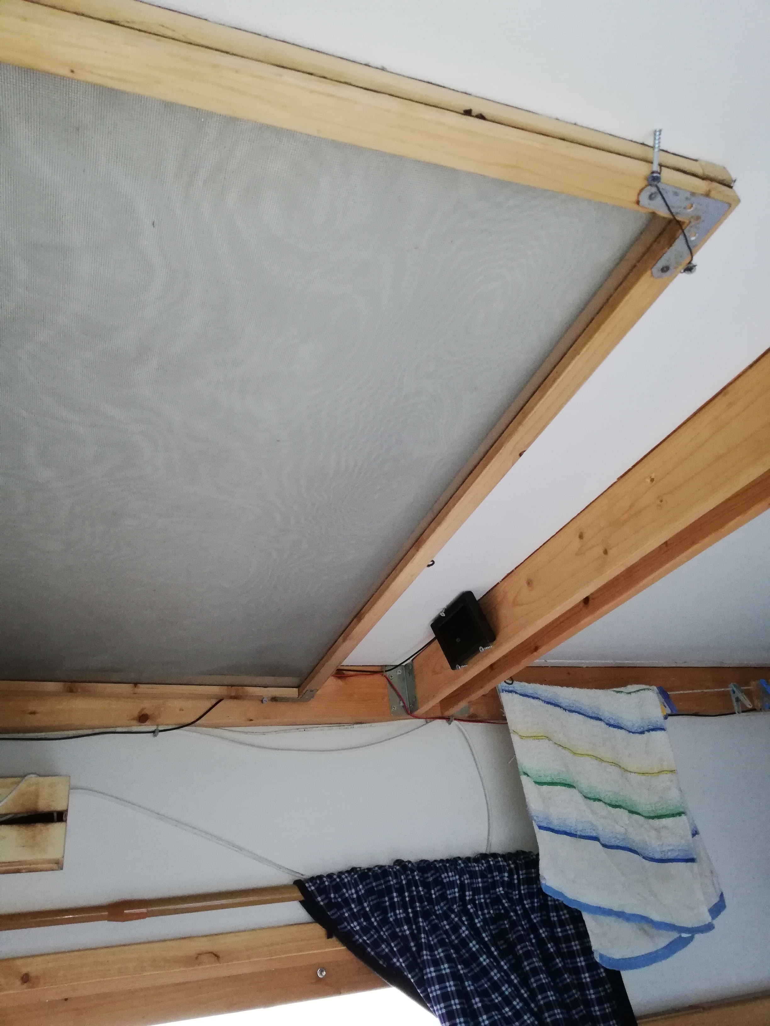 もう虫は入ってこないだろうから、網戸を外して天井に格納します。
