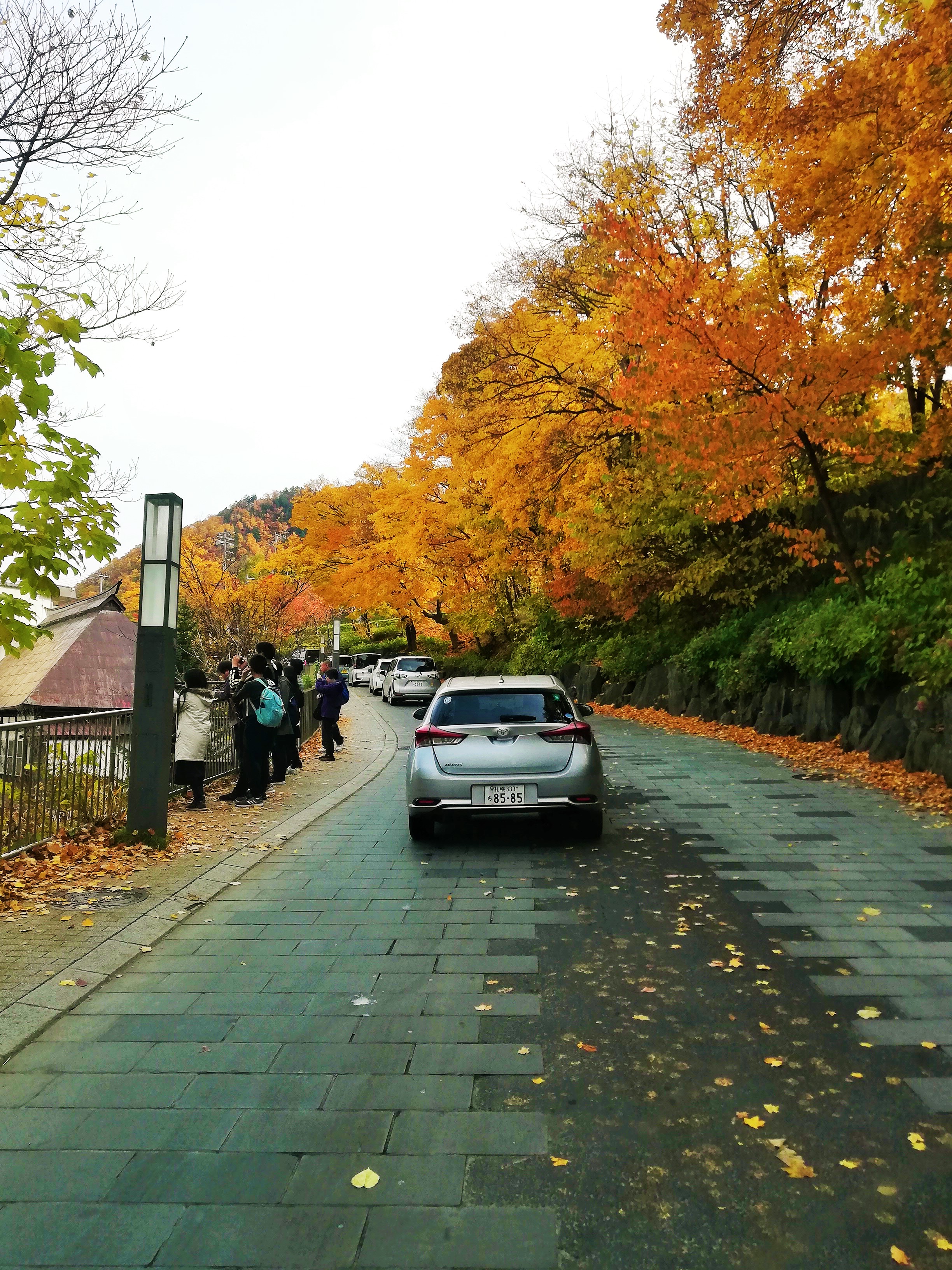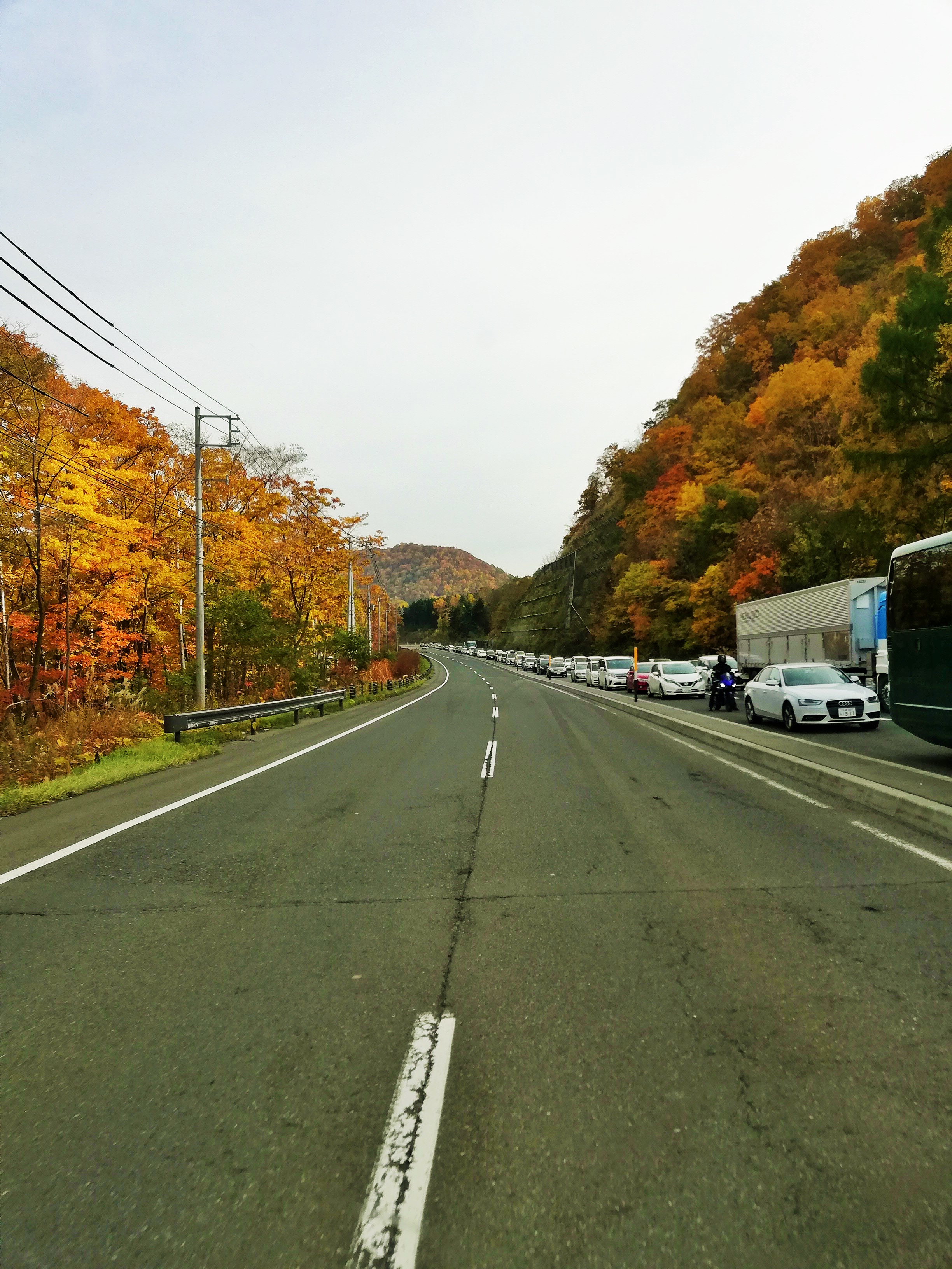 定山渓温泉方面に向かう車の列です。