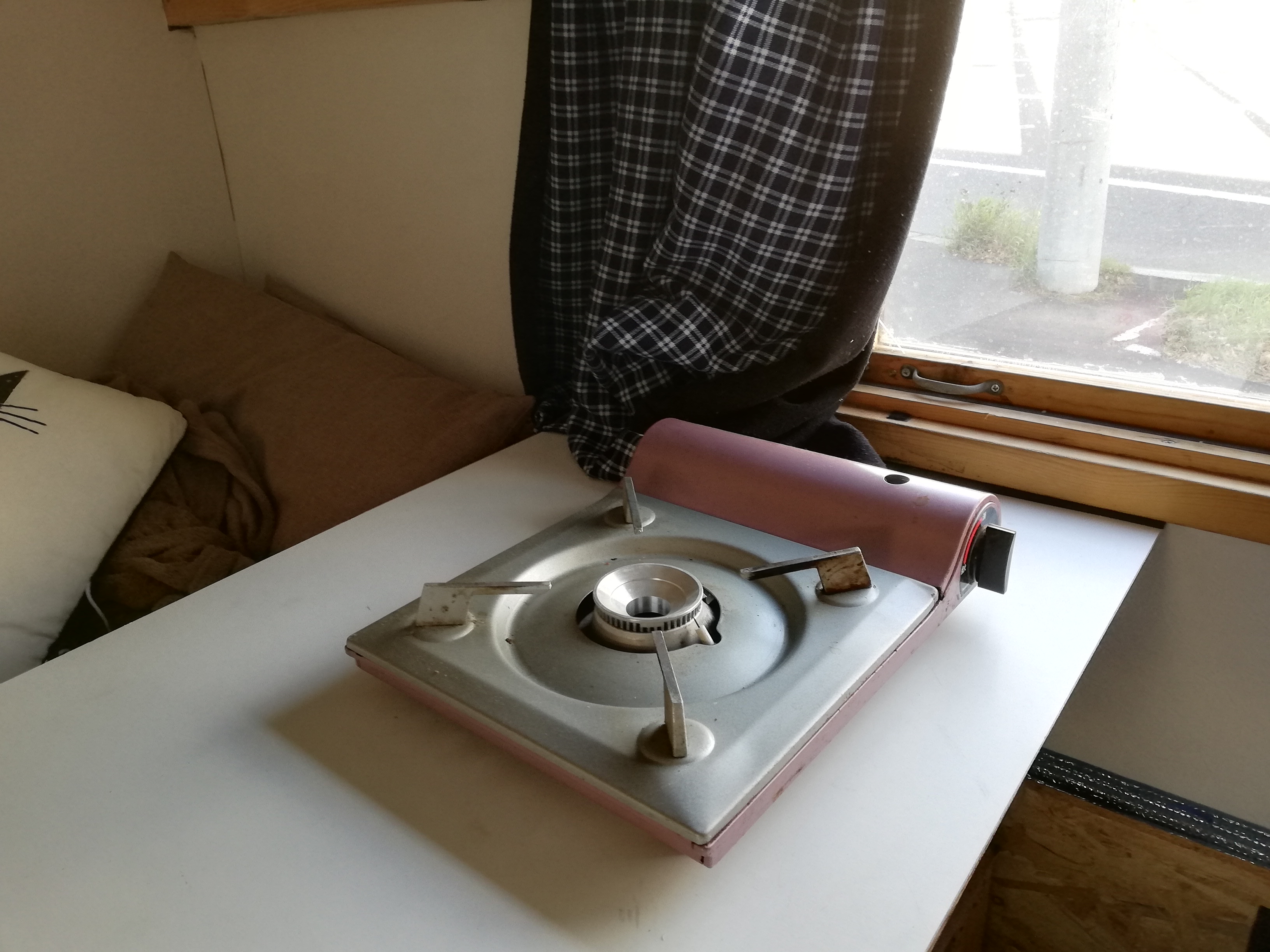 テーブルを窓側に移したので、ガスコンロの近くにカーテンがあるのが気になります。