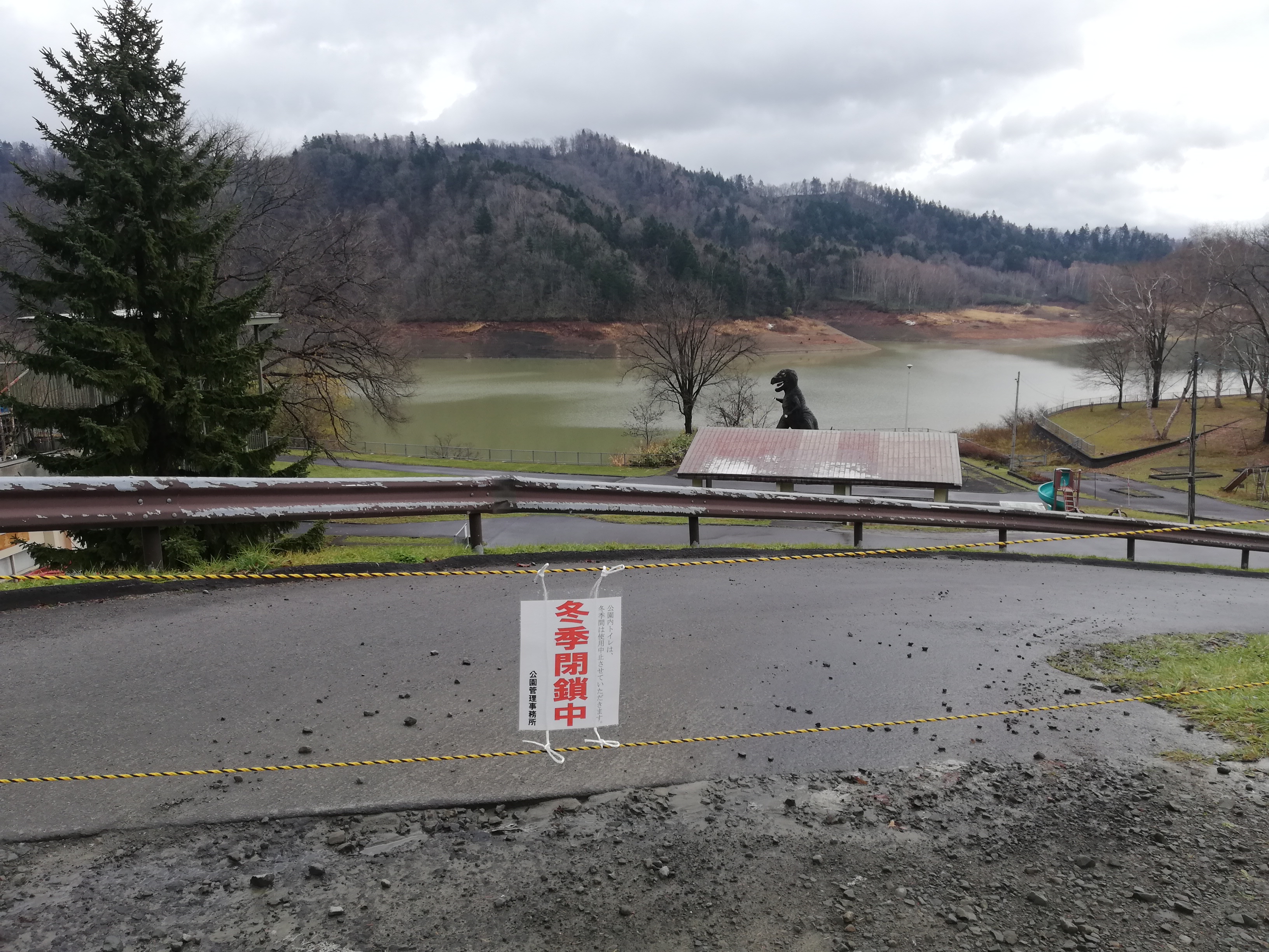 残念ながら桂沢湖のゴジラはここから遠目に見るしかありません。