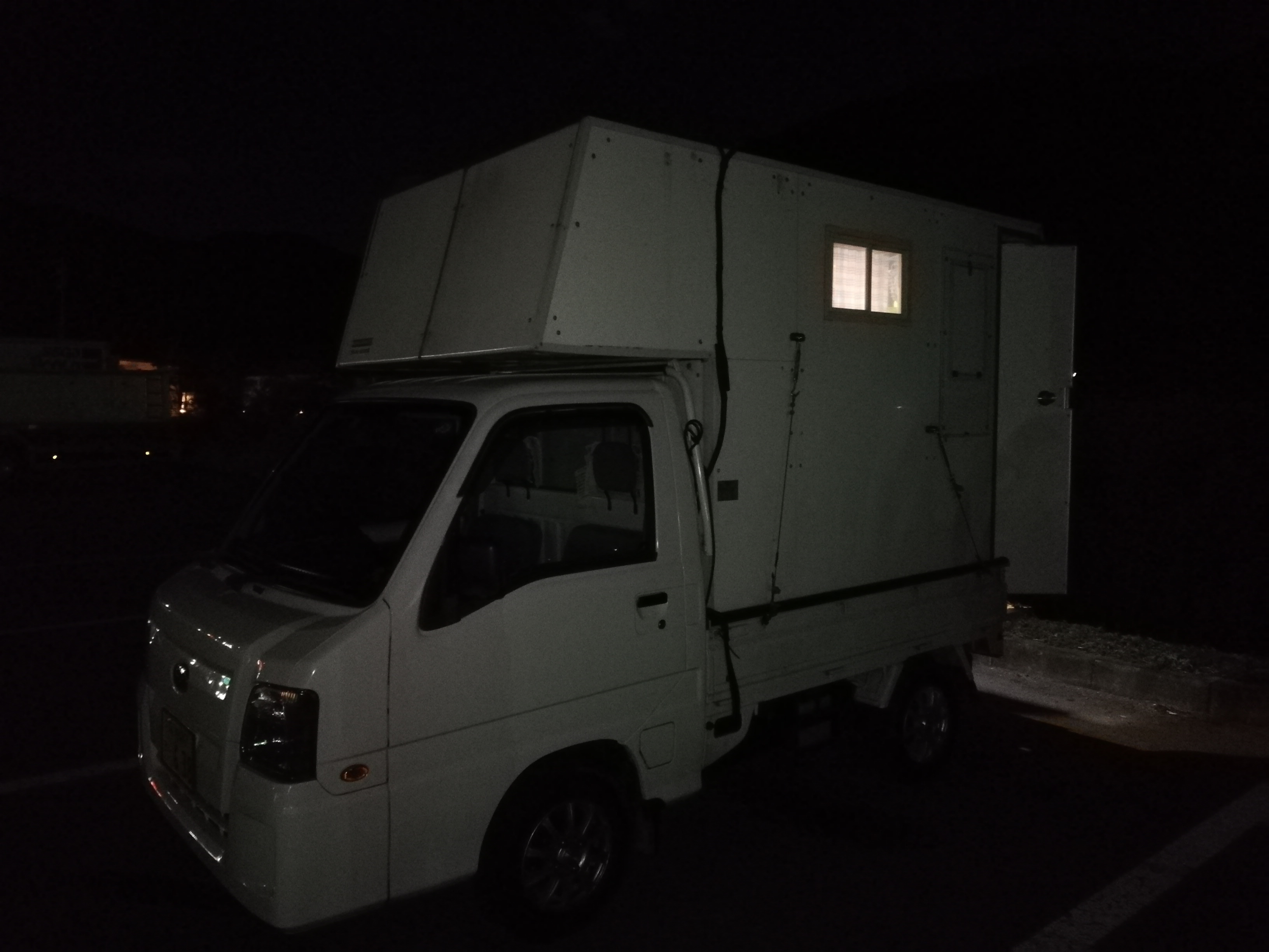 こんなステキな自作キャンピングカーで現れたのです。