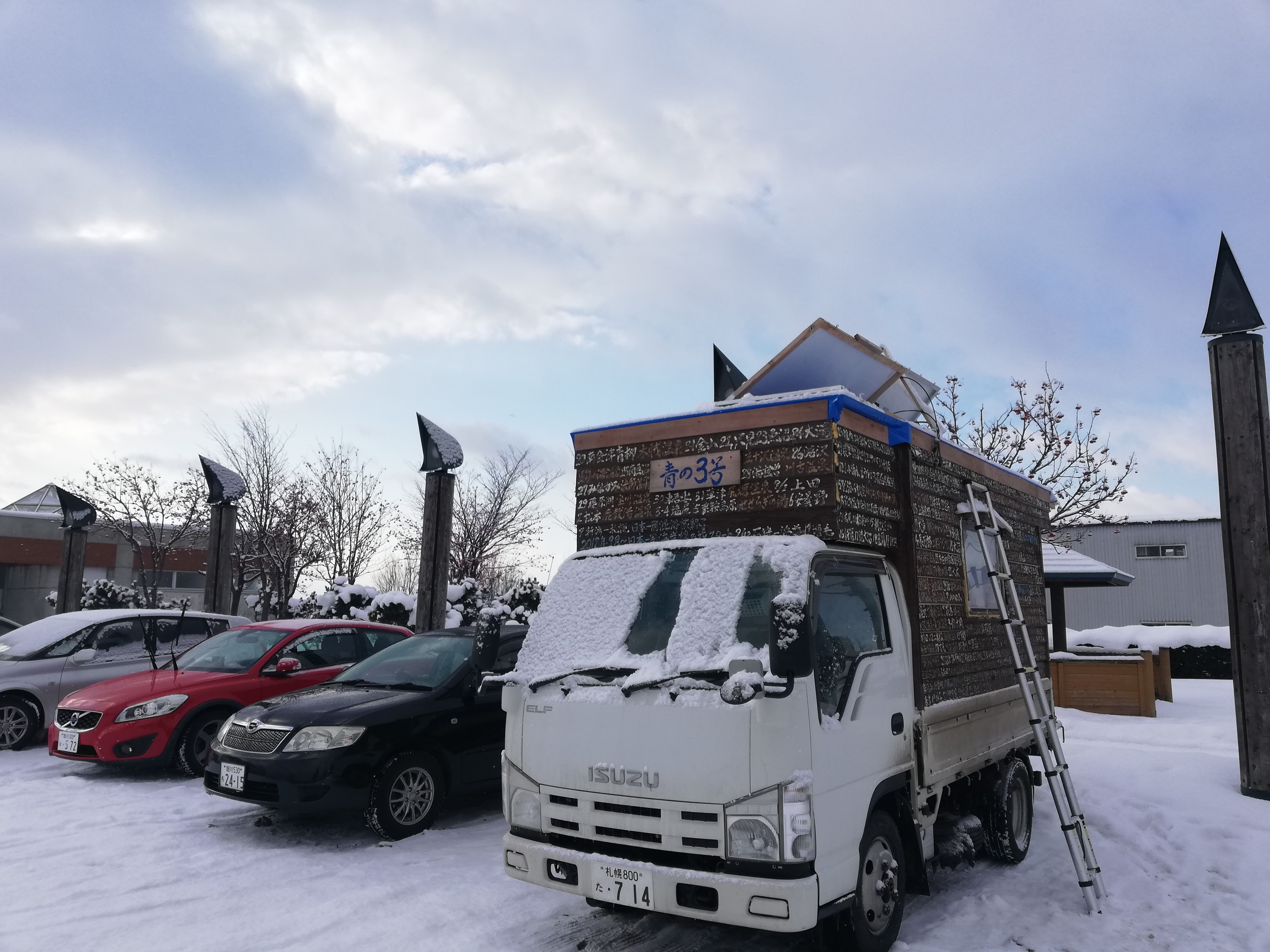 1週間前に新潟からフェリーで小樽に渡り、ニセコに行ったものの雪が少なくて、新雪を求めてここまで北上してきたとのことです。