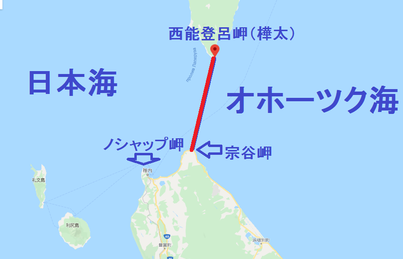 *宗谷岬と樺太の西能登呂岬を結ぶ線が日本海とオホーツク海の境目になる。