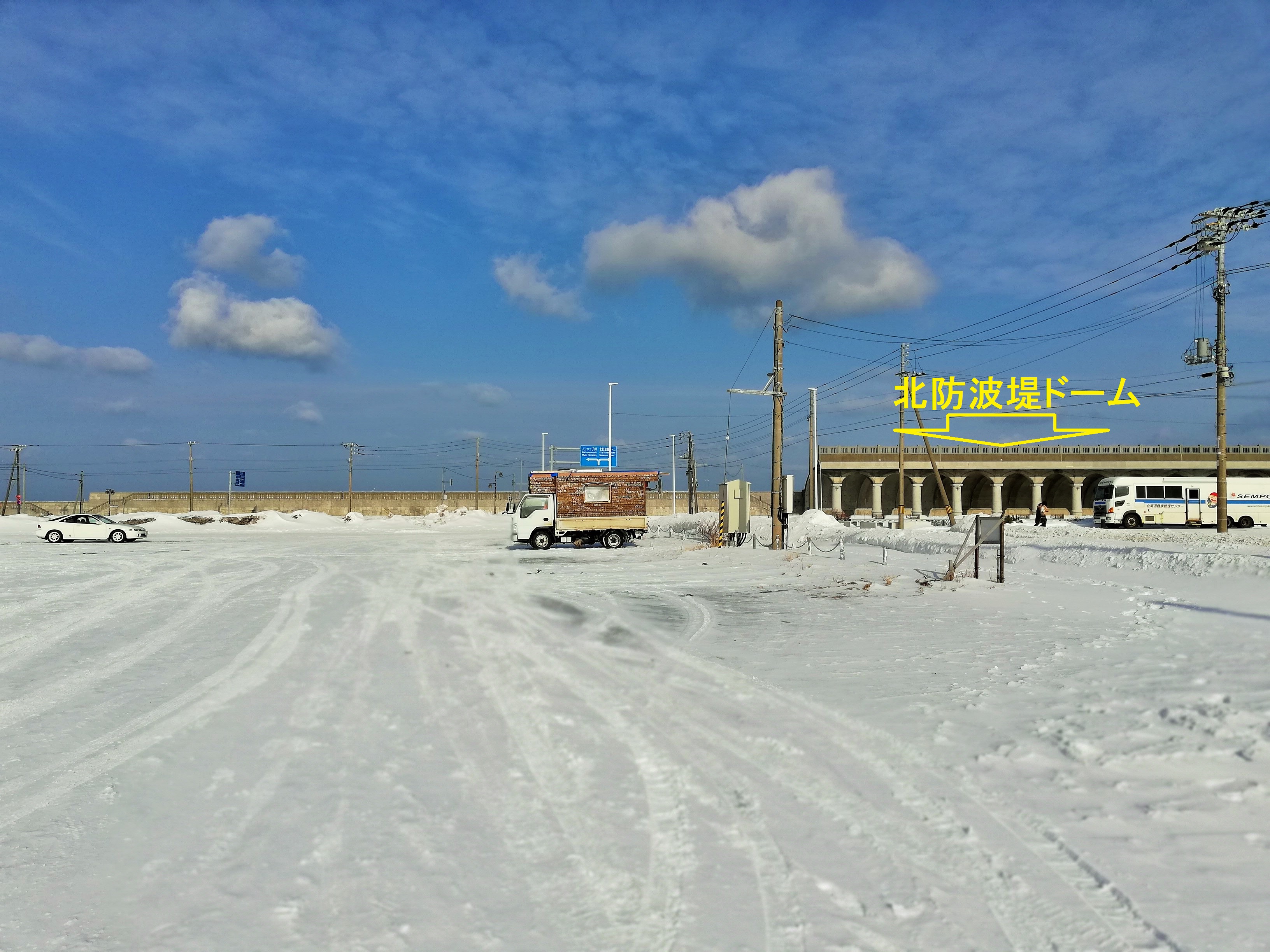 そして向こうに見えるのが、北海道遺産にもなっている北防波堤ドームです。