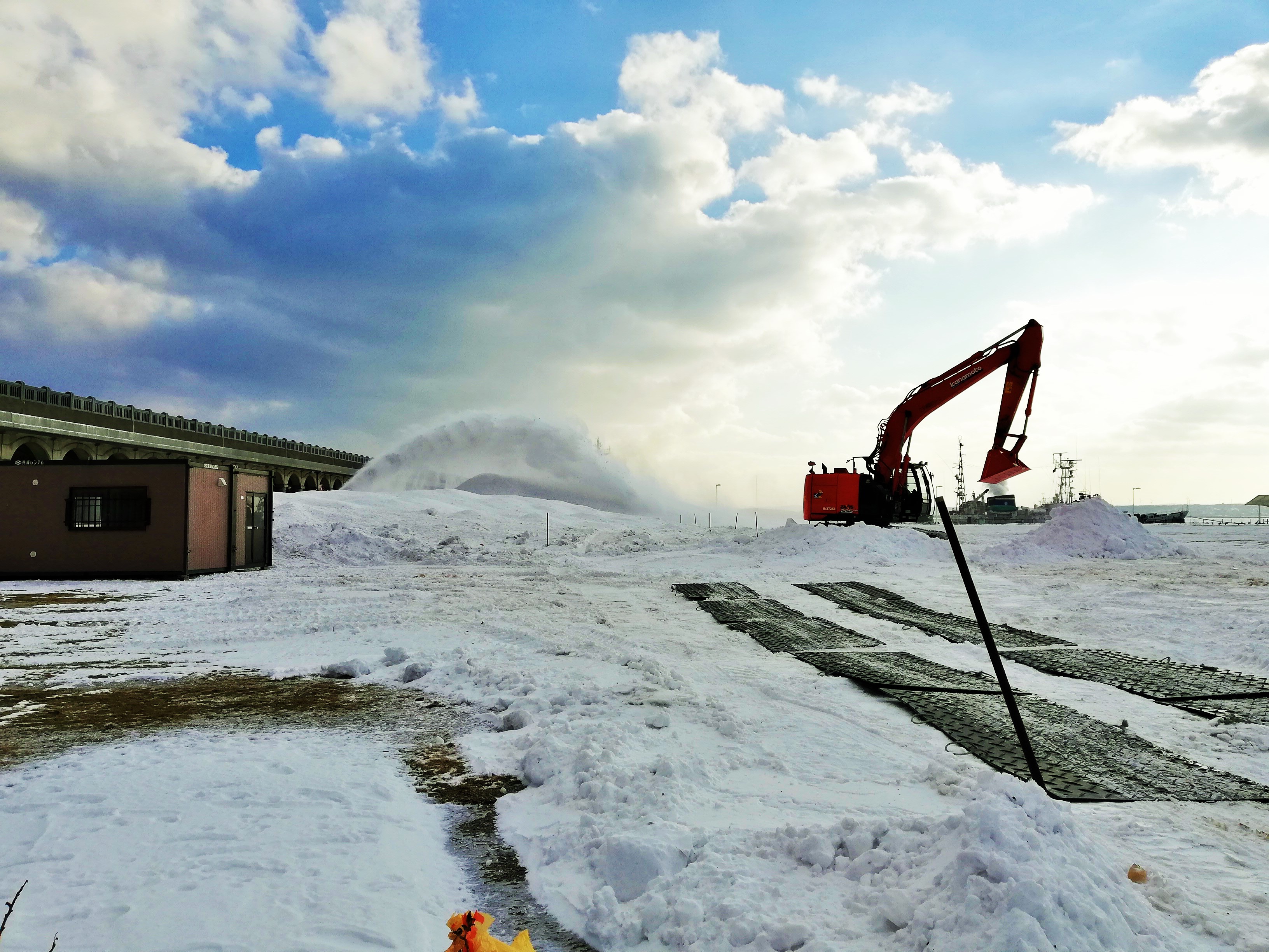 来月上旬に行われる稚内雪まつりの会場作りで、あそこに雪を運んでいるのだそうです。