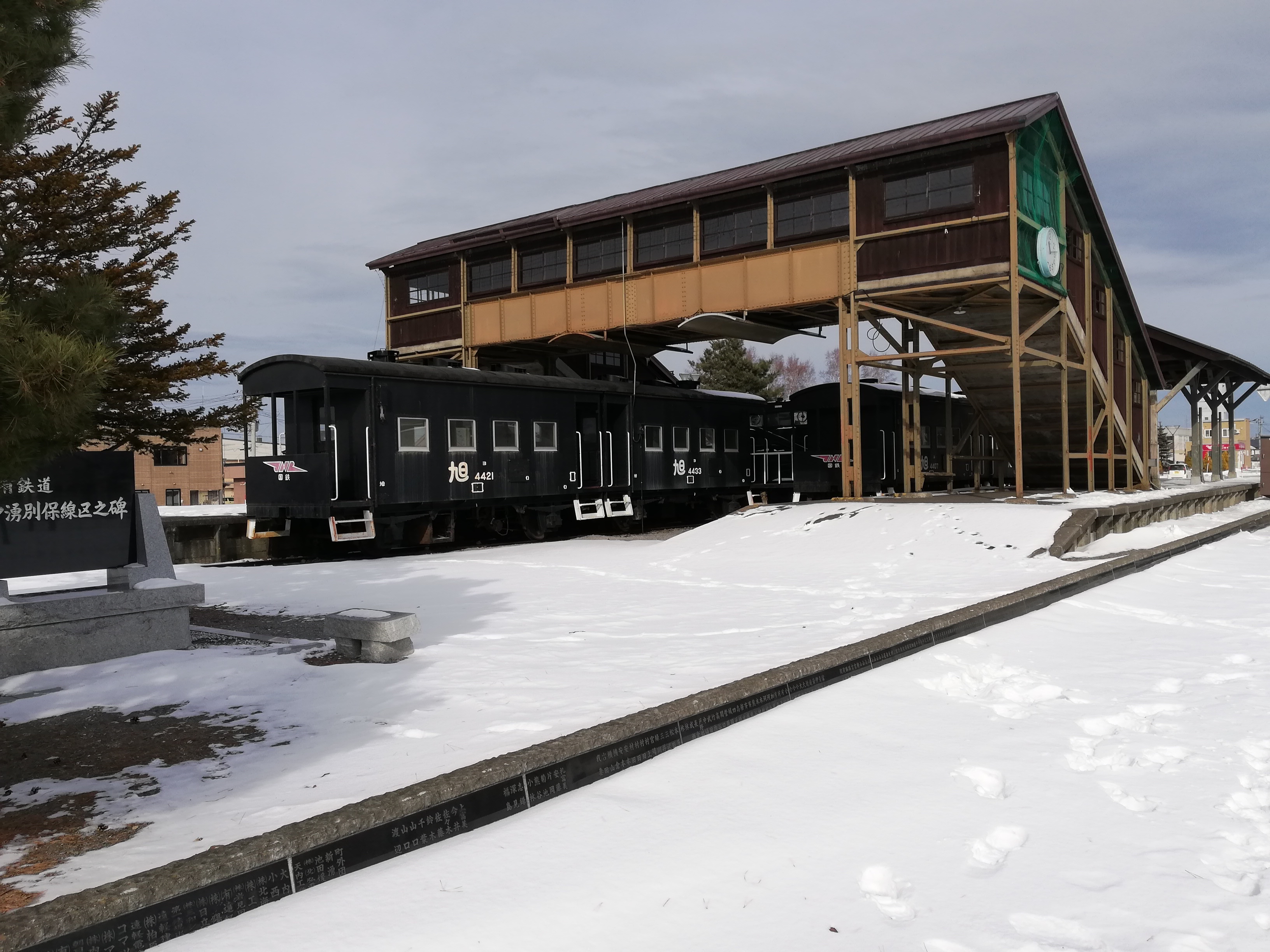 青の3号の向こう側に見えているのが、1989年に廃線となった名寄本線の中湧別駅です。