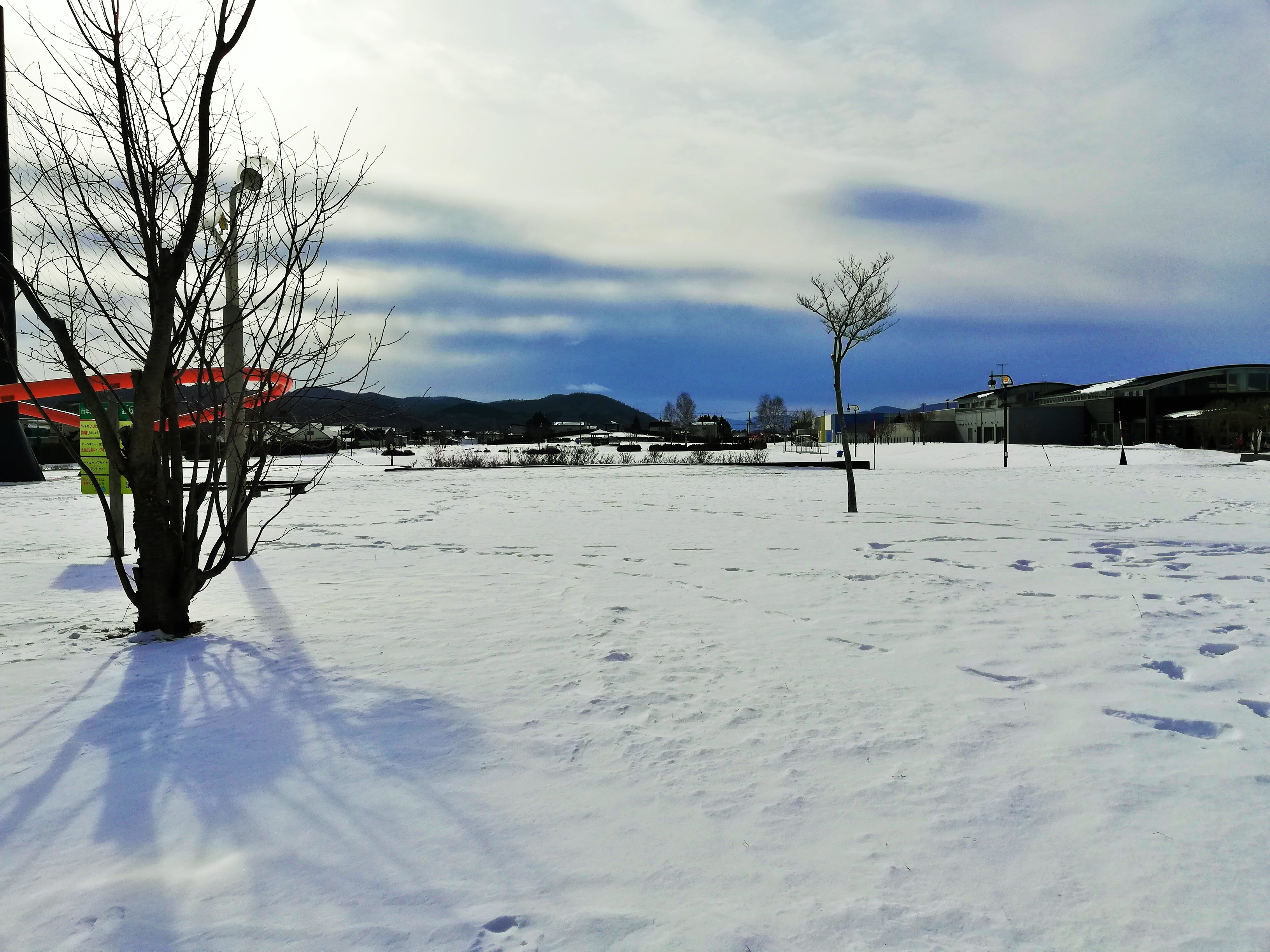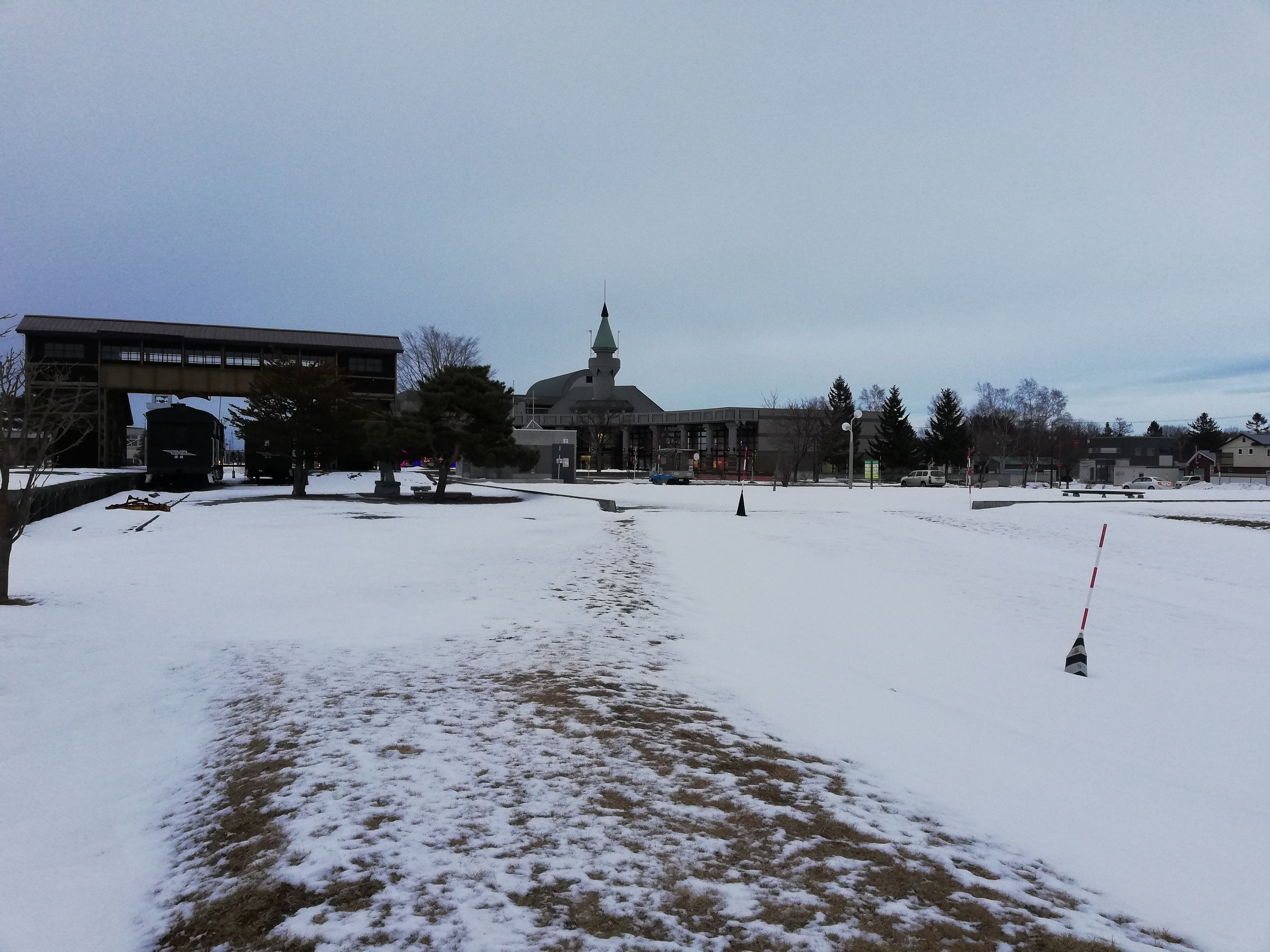 雪が少ないので公園の中をショートカットして戻ります。