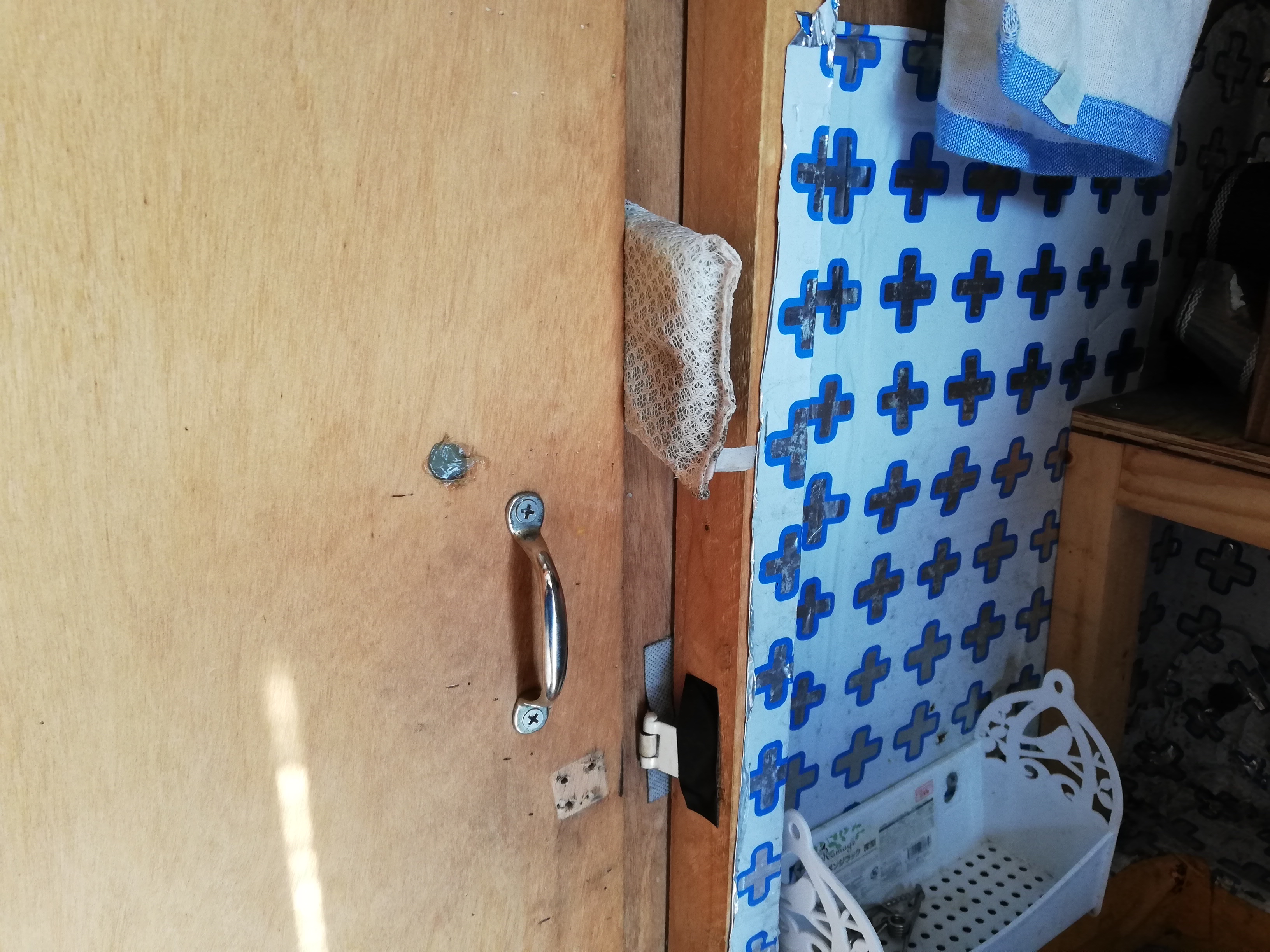 ドアが完全に閉まらないよう、スポンジを挟んで