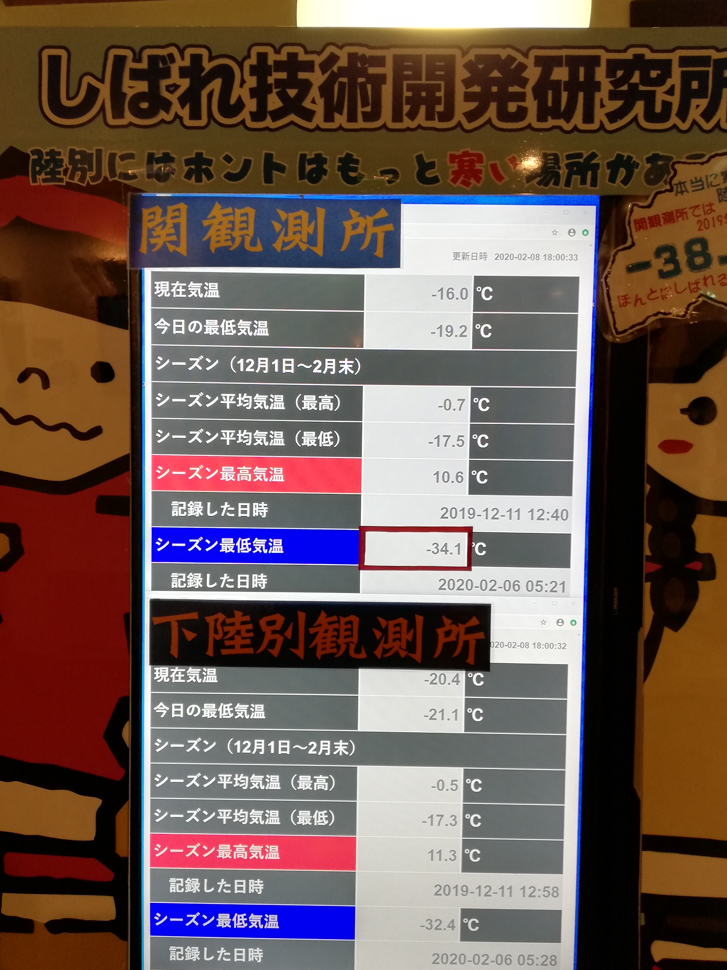 関観測所の今シーズンの最低は、2月6日5:21の‐34.1℃。