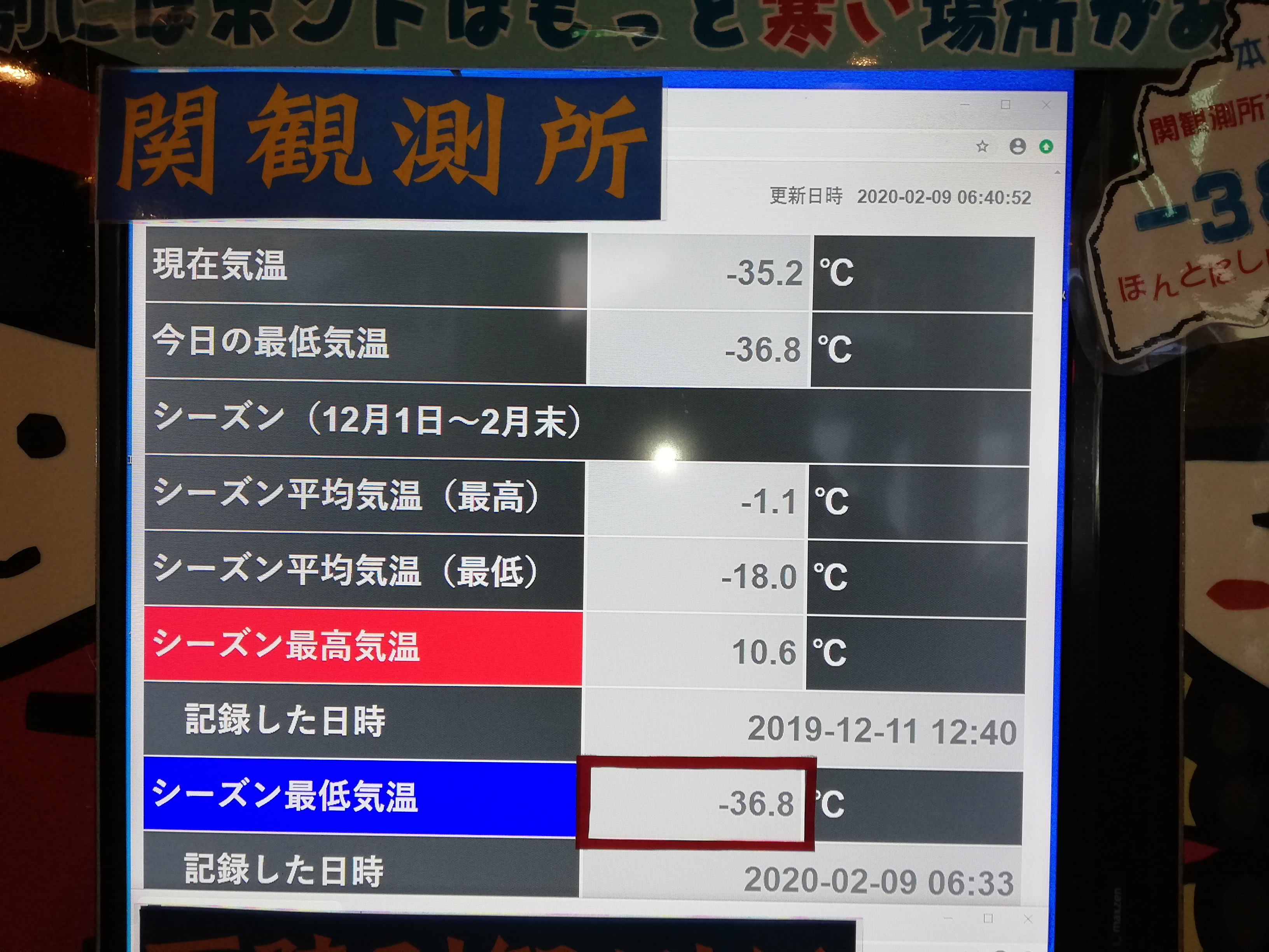 旭川の江丹別で国内で19年ぶりの‐36.0℃を観測したというニュースが流れていたけど、