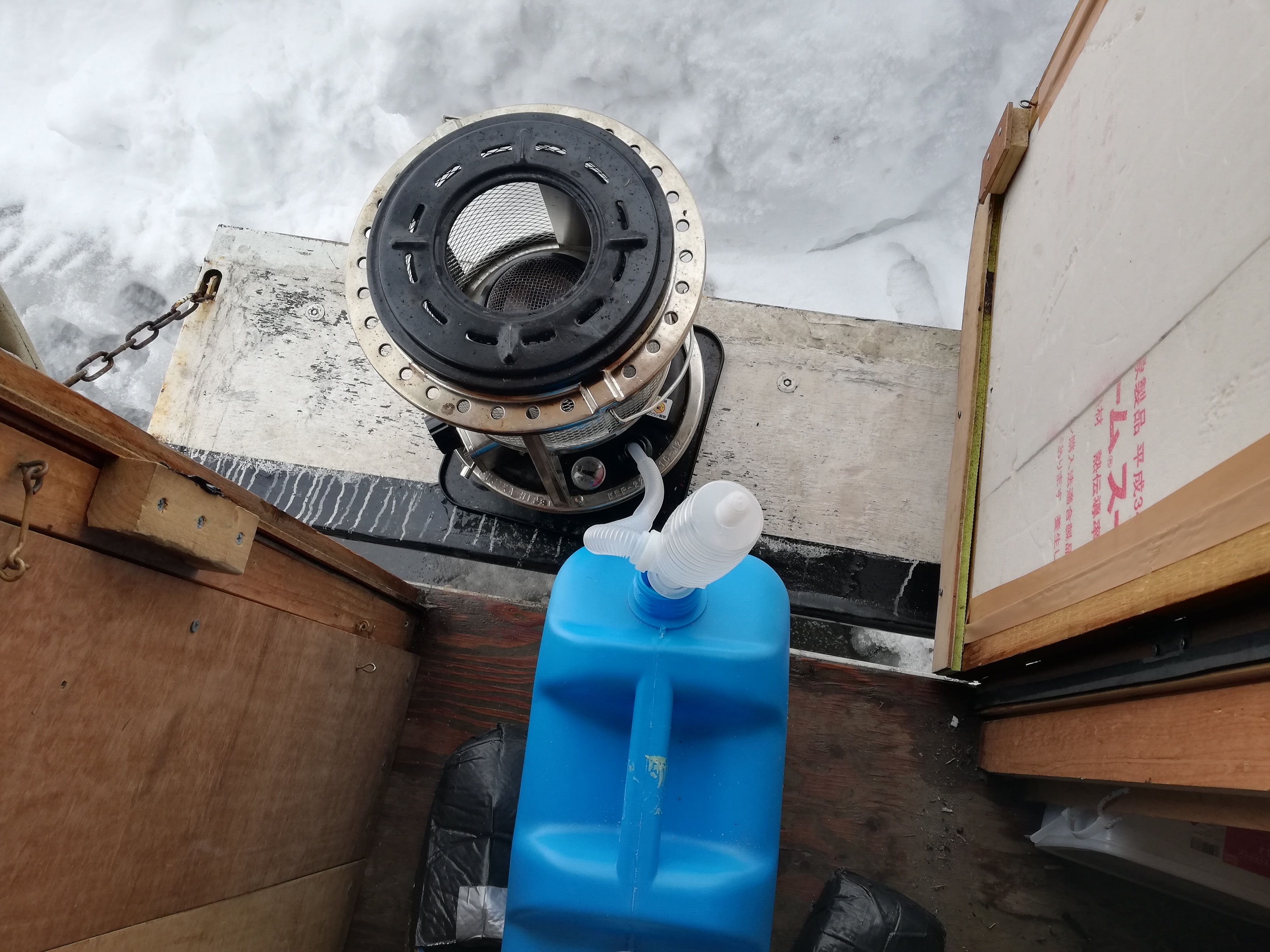 まずは、ストーブに給油し