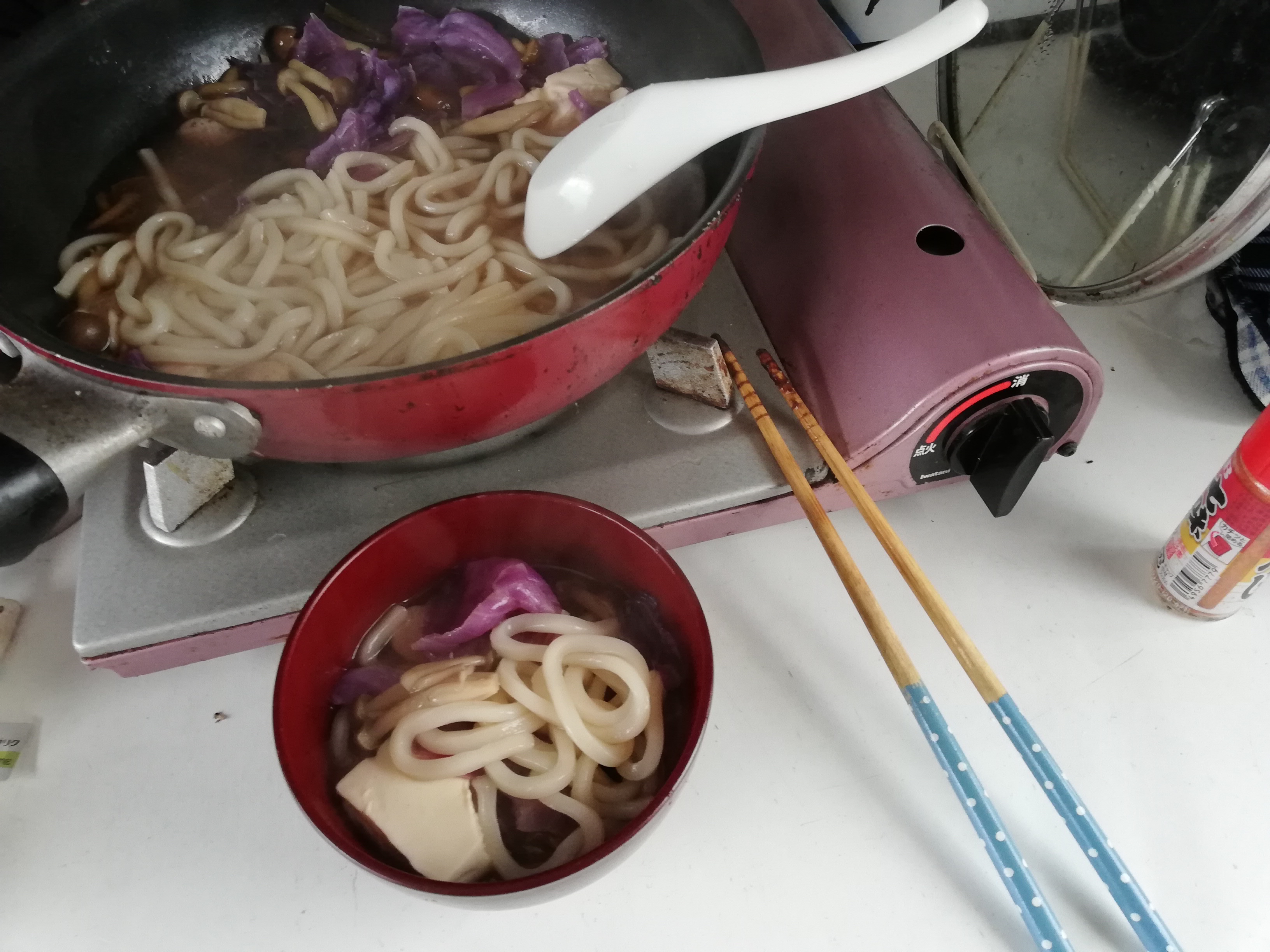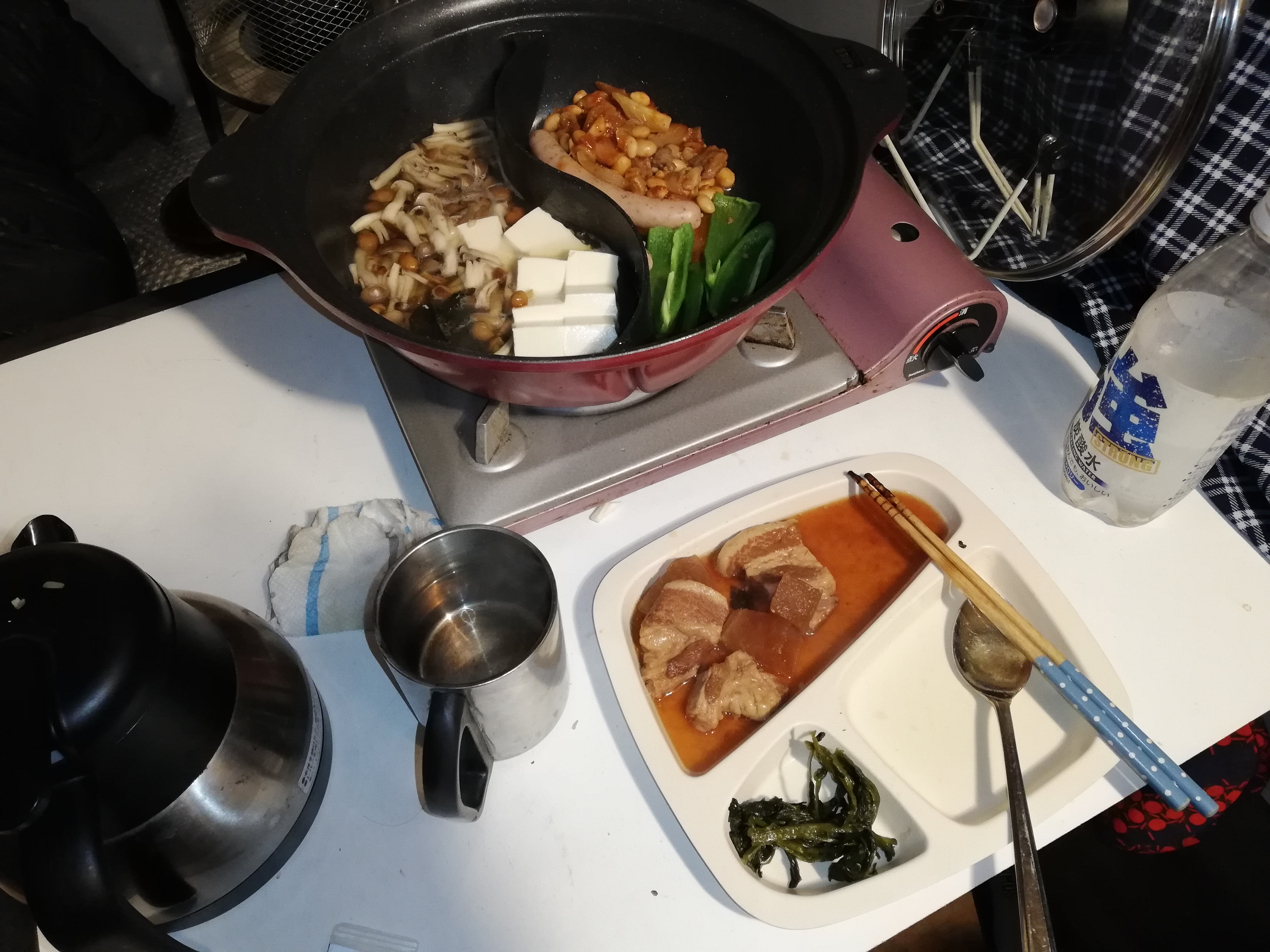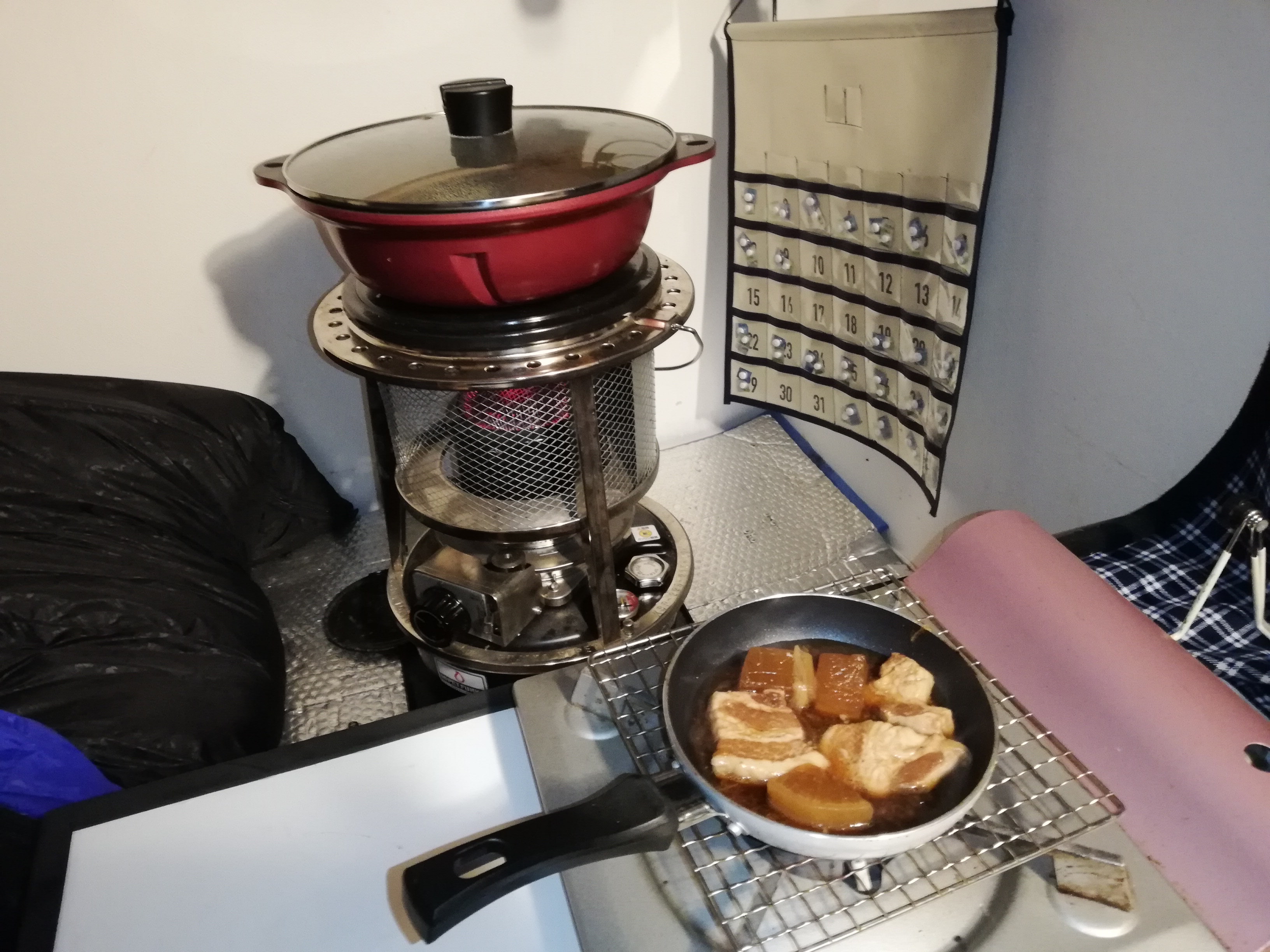 今夜は、ストーブで二食鍋を作りながら、