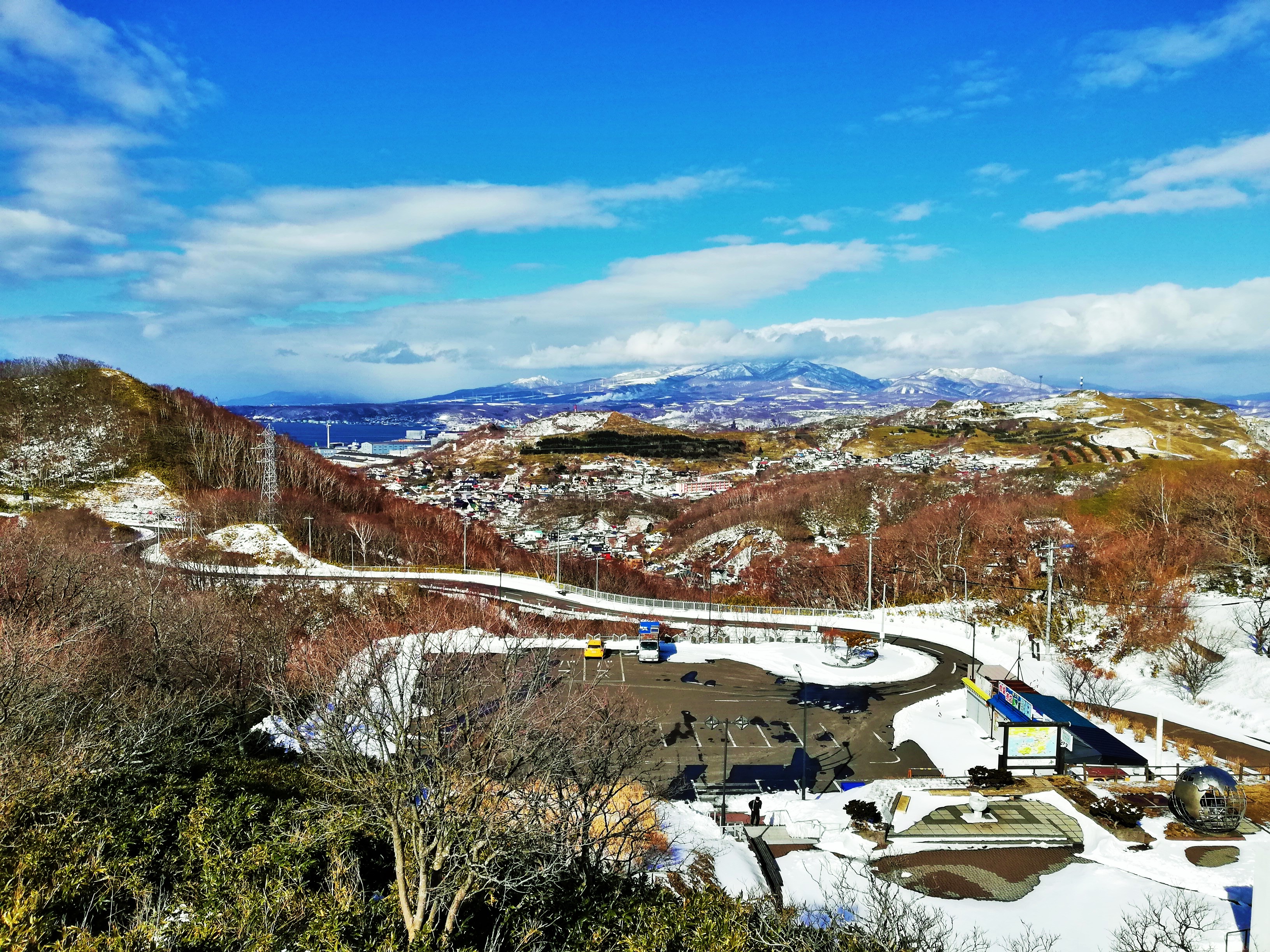 青の背後に室蘭の市街が見えます。