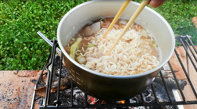 昼は気分転換にベースキャンプでラーメンを作って食べます。