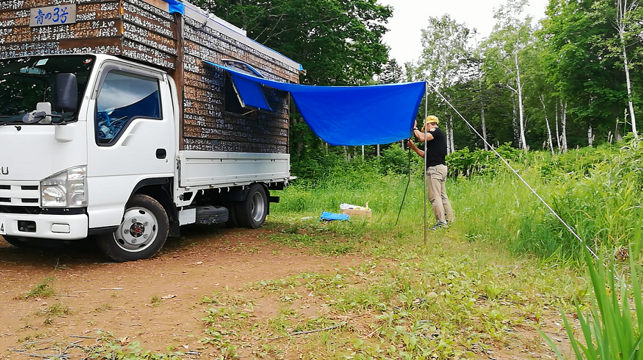 この物語は、札幌在住のサラリーマンが60歳で会社を辞め、トラックの荷台に小屋を建て、脳梗塞や痛風やヒグマに行く手を阻まれながらも、世界のどこかで吹いているという伝説の「青の風」を探し求めて未知なる旅を続ける壮大なファンタジー・アドベンチャーブログである。
