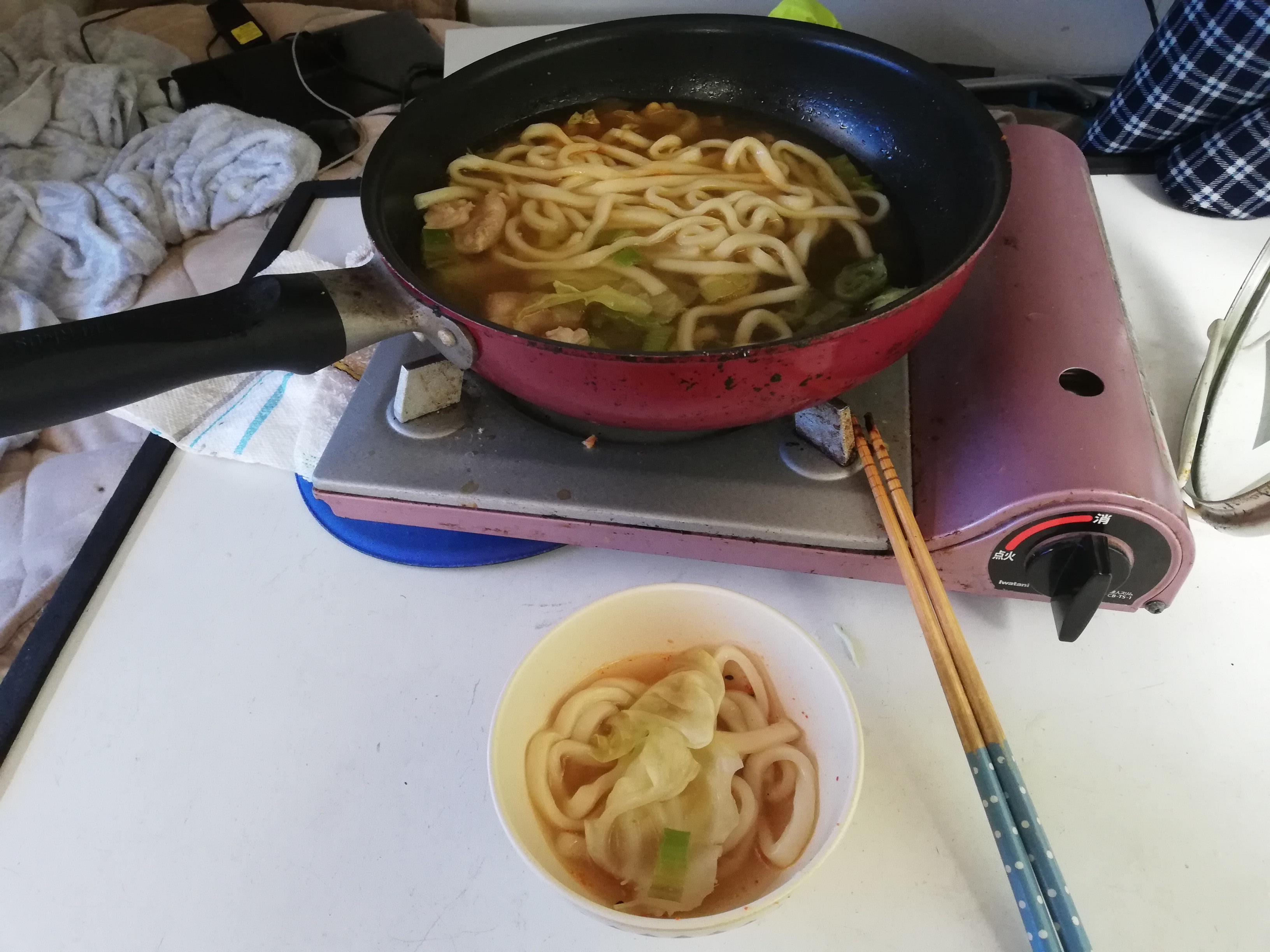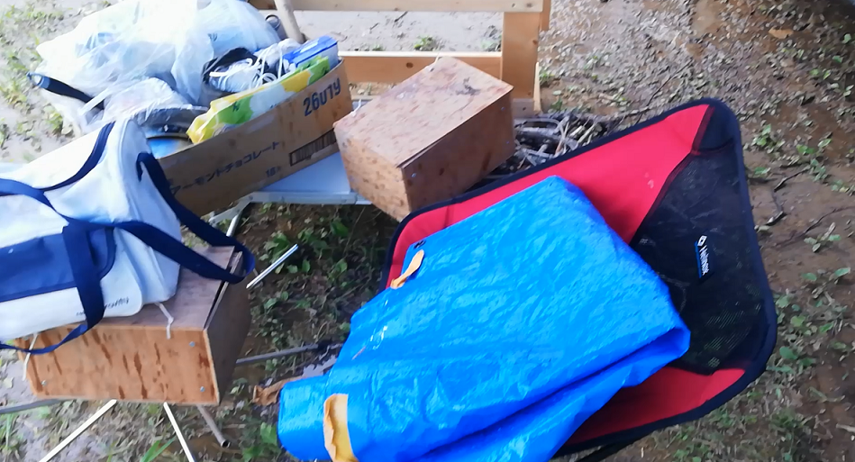 あわてて、道具入れの段ボール箱などを椅子やテーブルの上に乗せます。