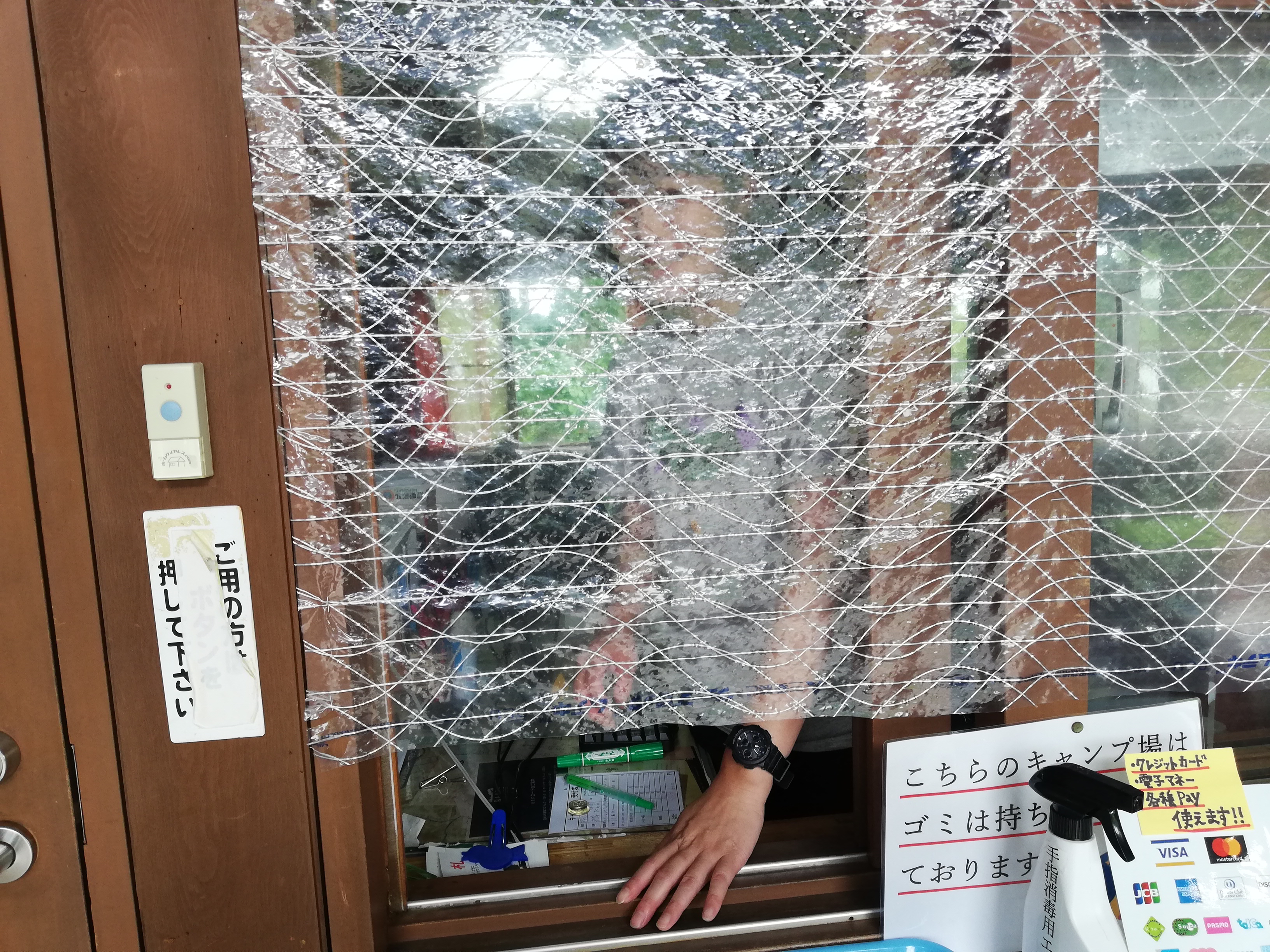 コロナ対策の半透明シートの向こう側にたたずむ方に