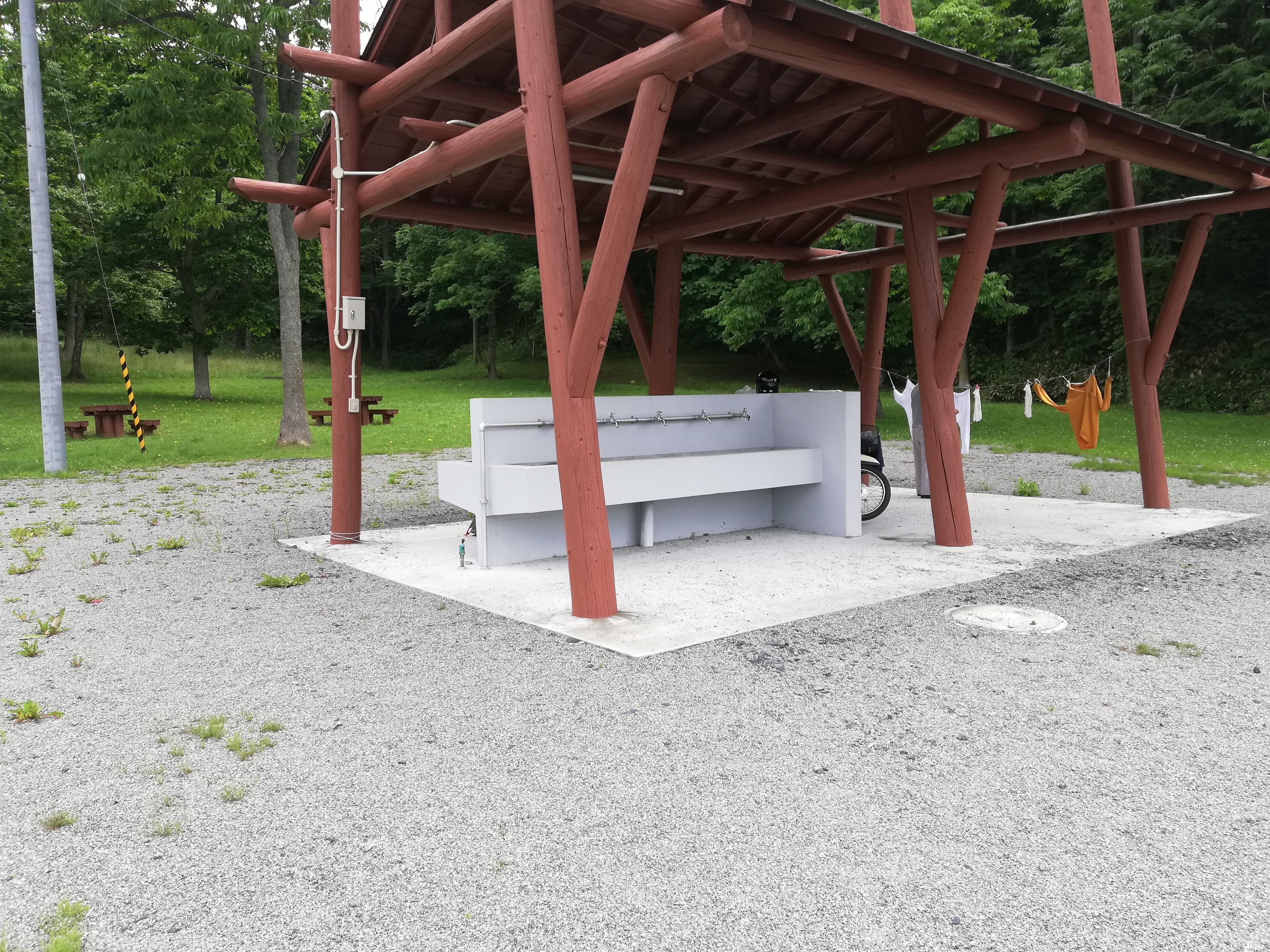そして、キャンプ場には炊事場にテントを張っているバイカーと、