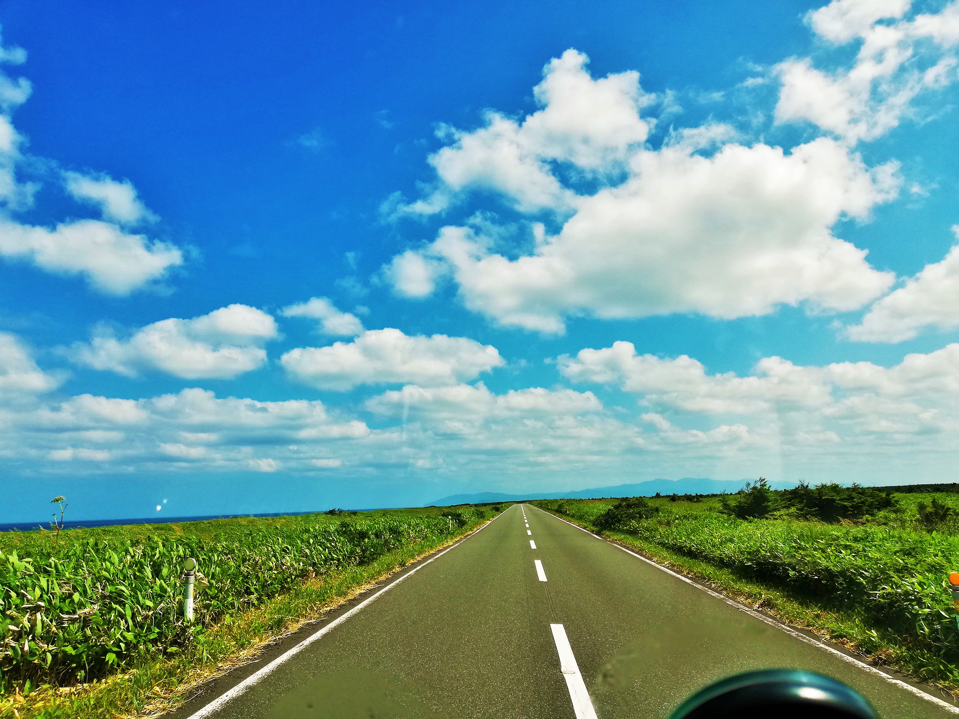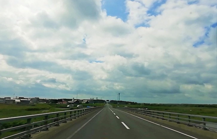 このまっすぐな道を太陽が照り付ける下で走りたかったので天気待ちをしていたのです。