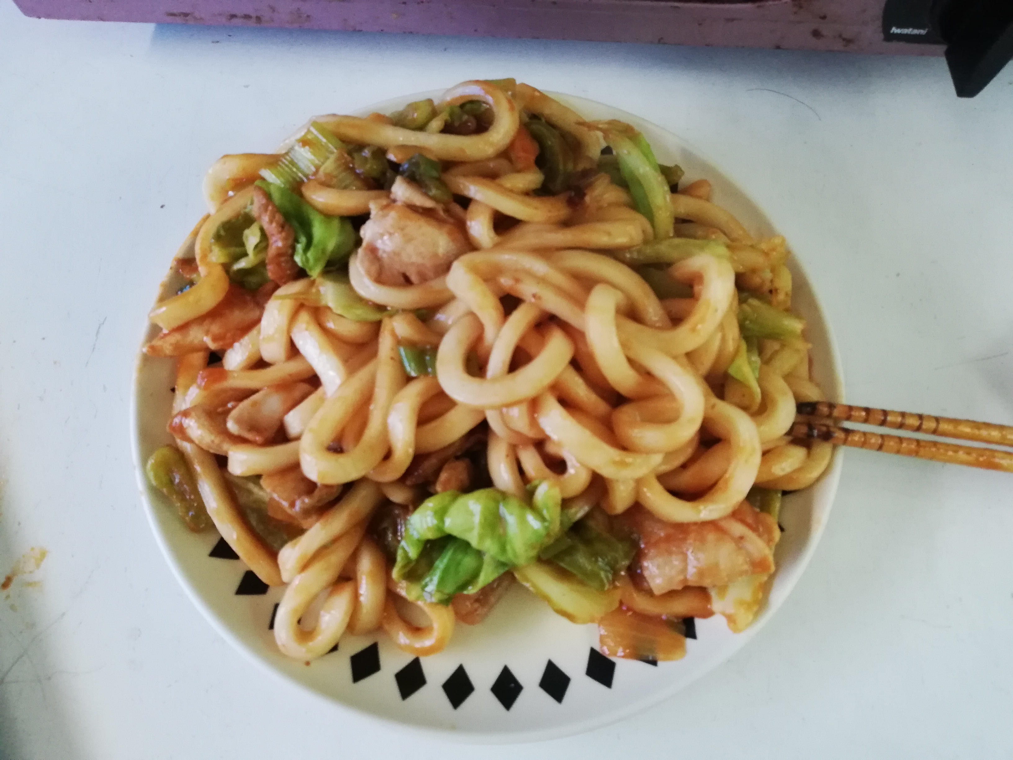 ↑フツーのうどんは暑くて食べる気がしないので最近は焼うどんです。