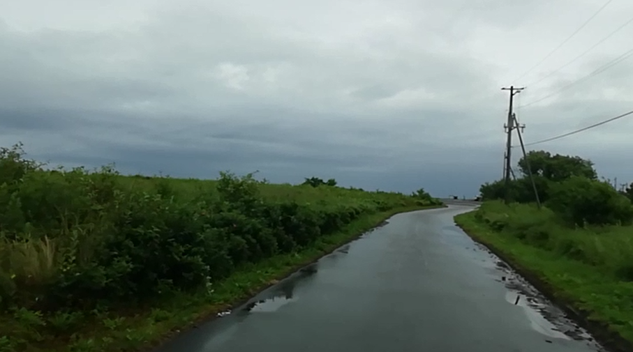そして、こんな暗い小道をサロマ湖畔に向かって走って行くと