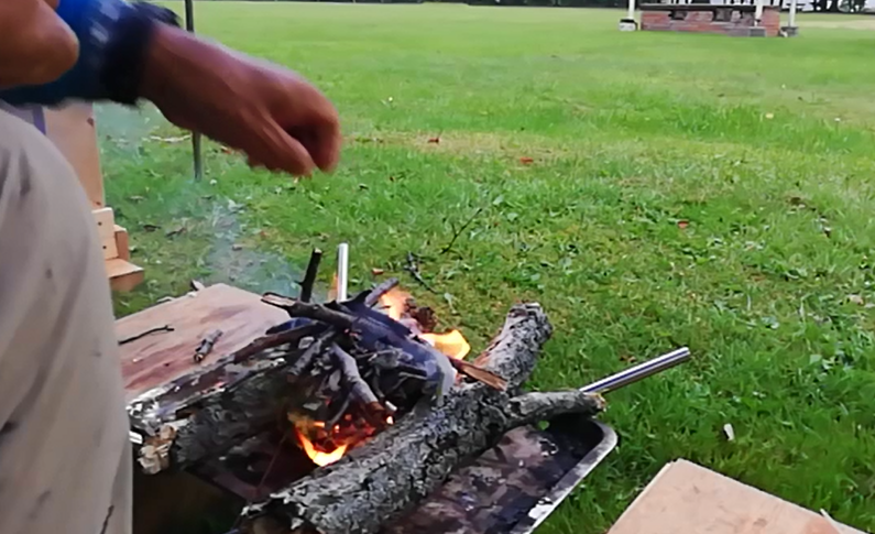 天気予報ではこれから雨が降るようなので、降る前に焚き木を拾いにいきます。