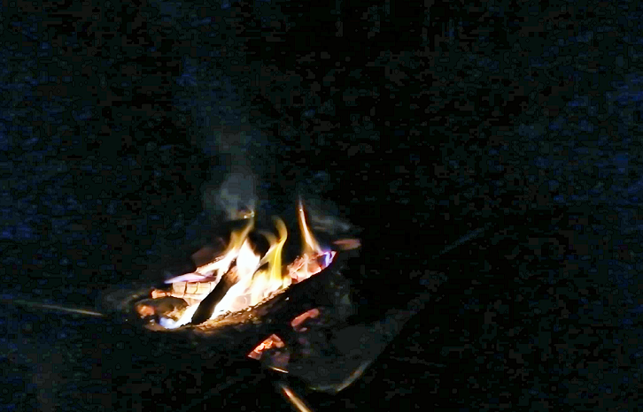 焚火の炎がメラメラと燃え続き、