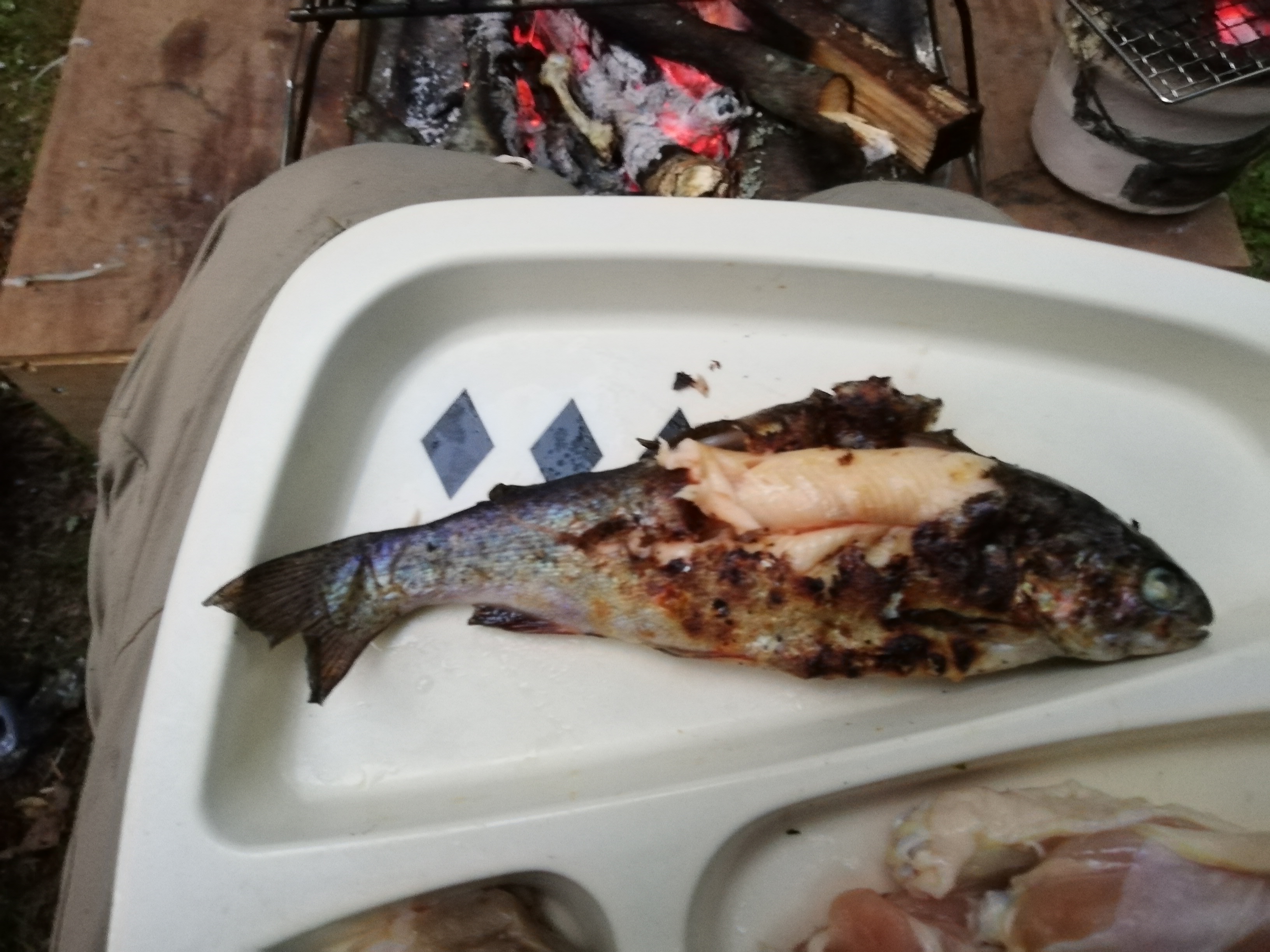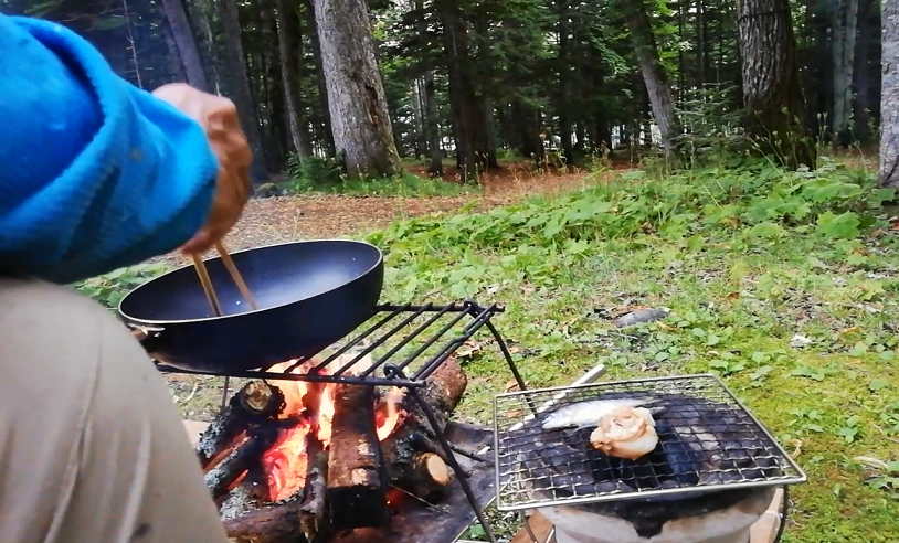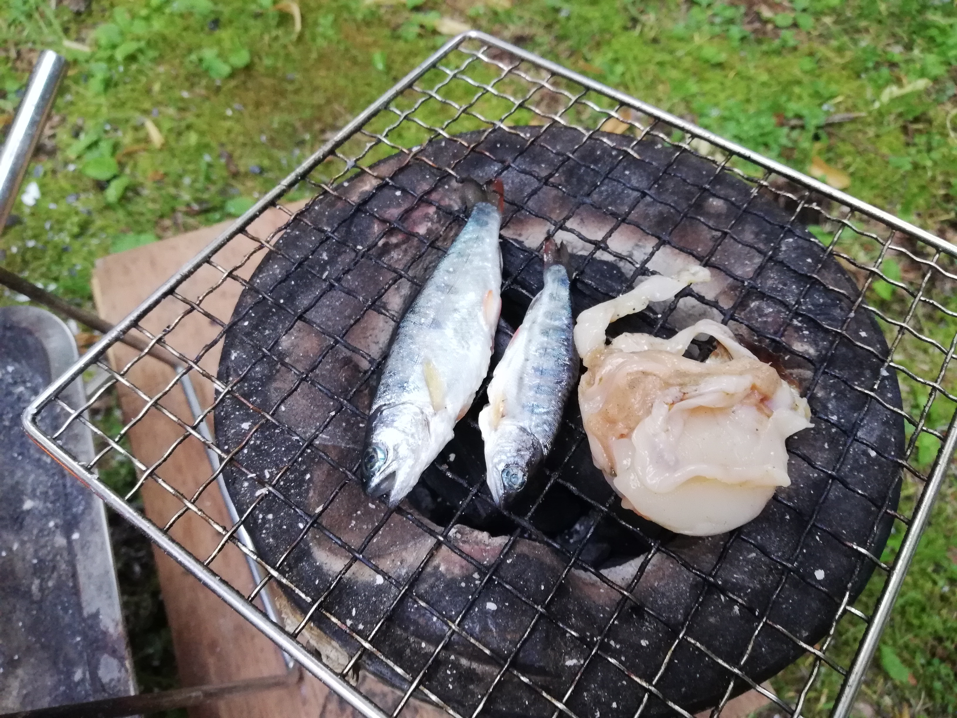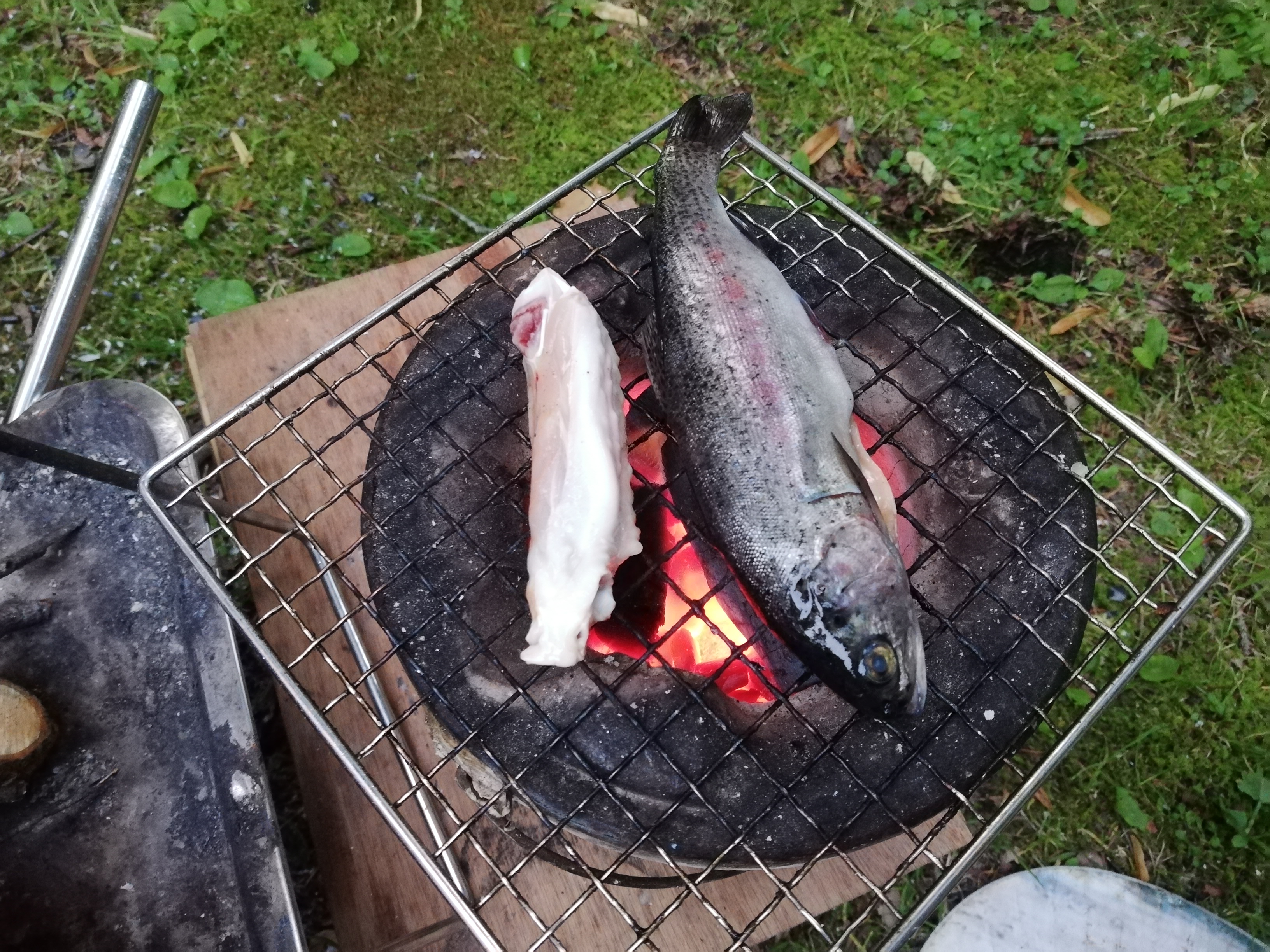 炭火では釧路川で釣ったヤマメやニジマスを焼きます。