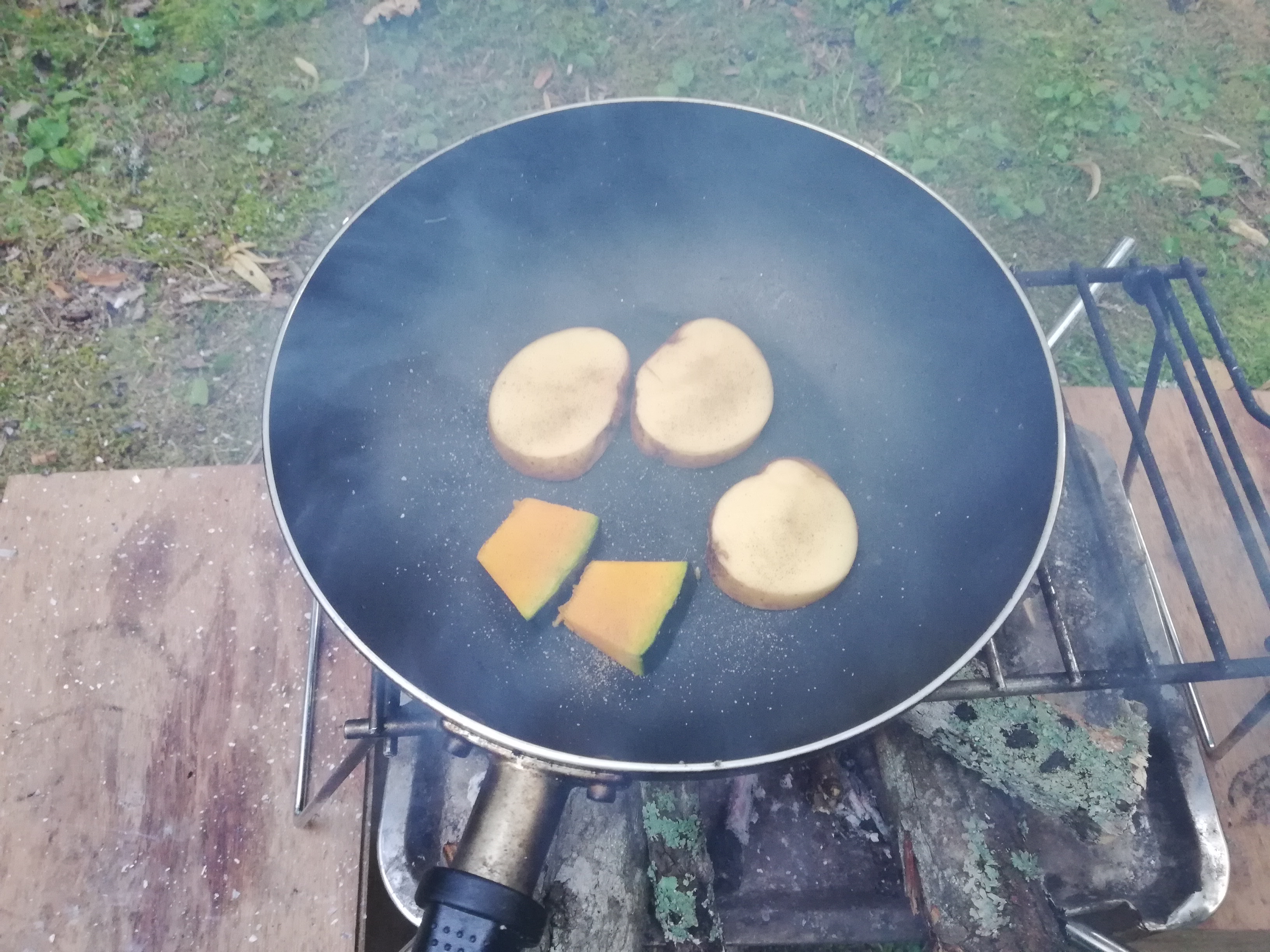 今日は焚火と炭火の