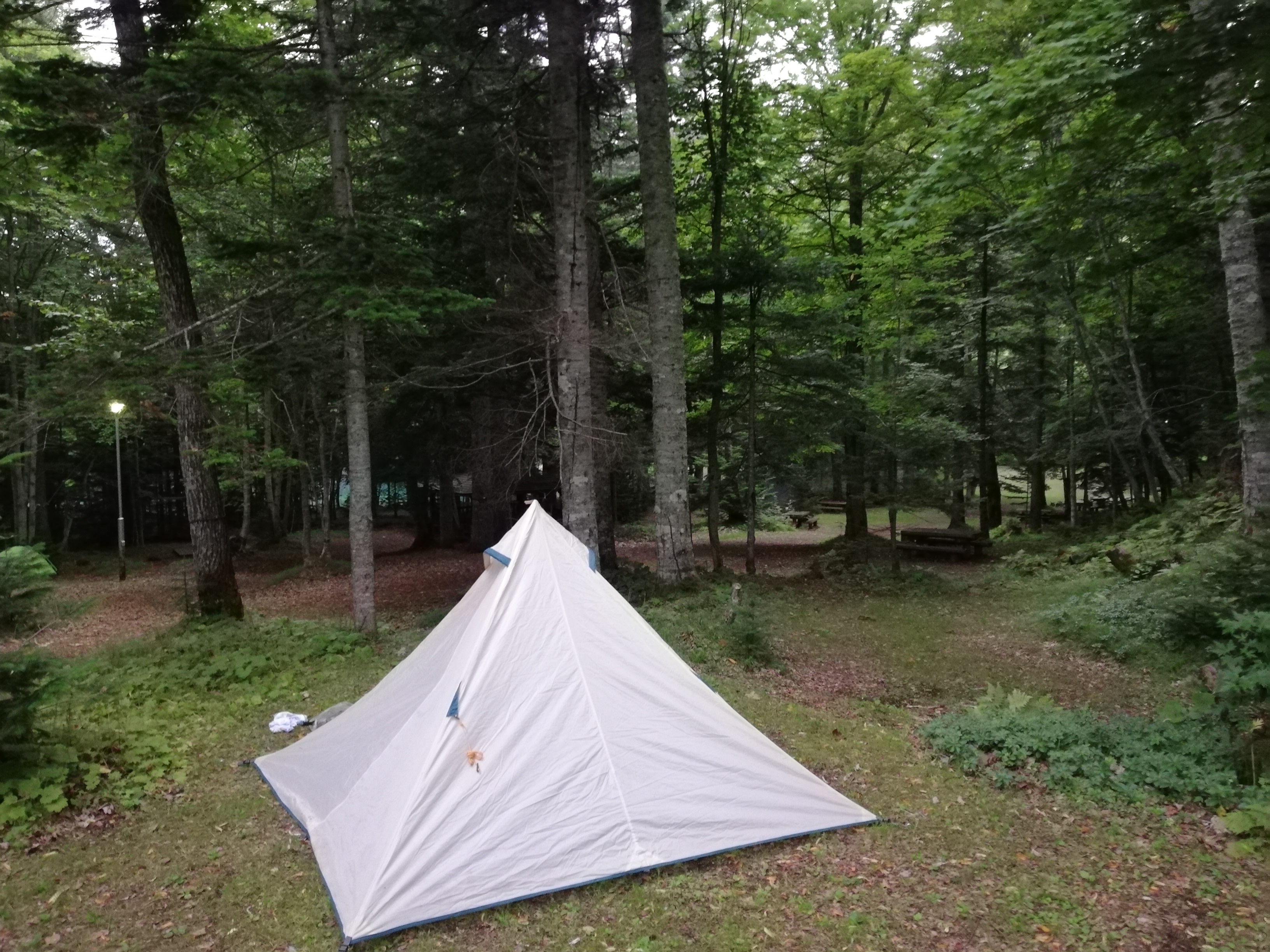 湖畔はNGのようなのでなるべく明るいところに張ります。