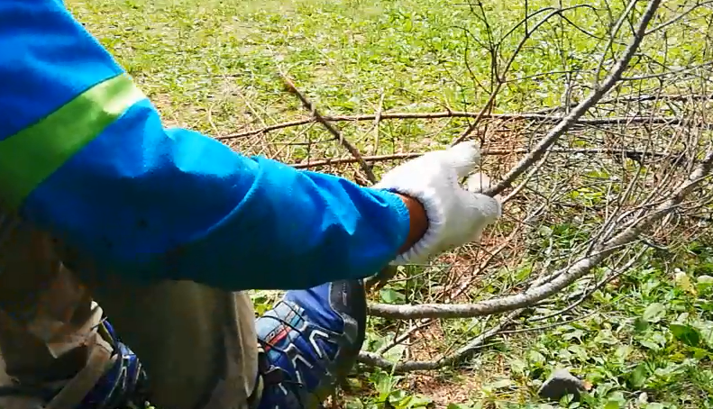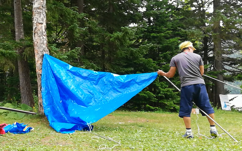 さて、今日のベースキャンプは、久々にブルーシートの登場です。