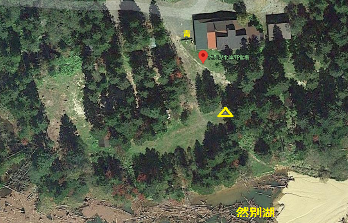 湖畔で会ったYOU父子(たぶん一番奥のテント)と、