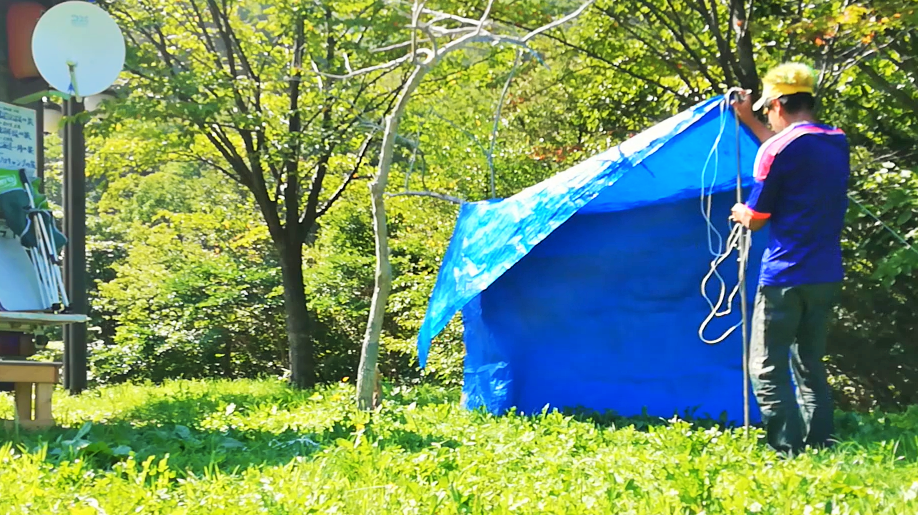 雨なんか降りそうもないので、こんなもんわざわざ立てなくてもいいんじゃ