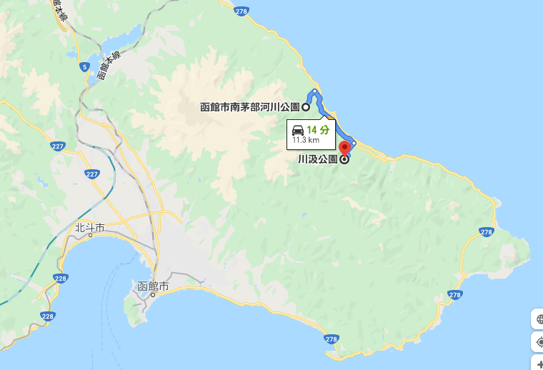 南茅部河川キャンプ場は函館市中心部から車で1時間弱。